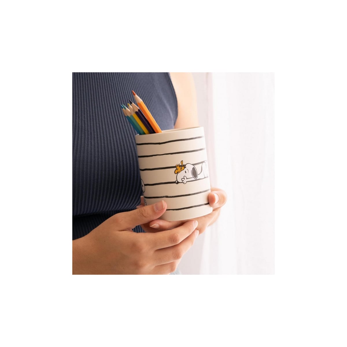 Descubre el Lapicero Cerámica Snoopy Lazy Days, es el complemento perfecto para los que quieren mantener su espacio ordenado con un toque de nostalgia y ternura. ¡Ideal para regalar o para decorar tu escritorio con el encanto de Snoopy!