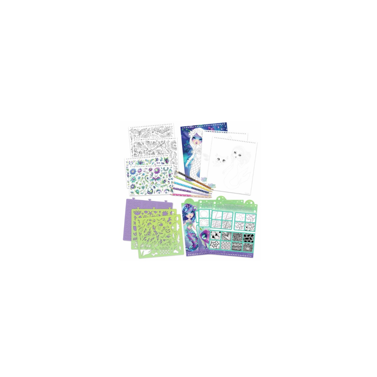 - Incluye: 35 páginas de bocetos, más de 80 plantillas, 3 patrones para frotar, 50 pegatinas y 5 lápices de colores de doble punta.