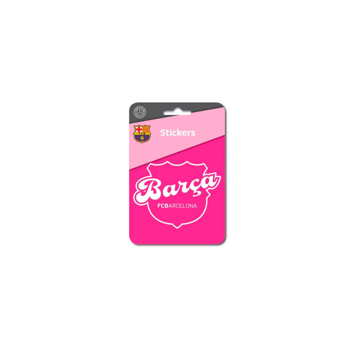 Pegatina del Barça con escudo en color rosa láser y diseño en relieve. Brillante, resistente y perfecta para decorar cuadernos o mochilas. Desde 5 años.