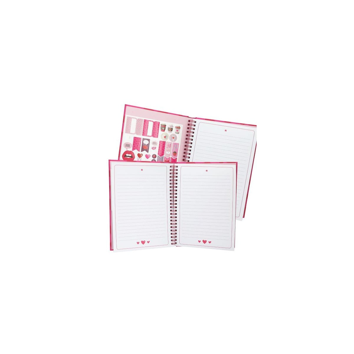 En el interior, el cuaderno incluye páginas con líneas suaves y un diseño limpio que ayuda a mantener una escritura ordenada y cómoda. También incorpora un set de marcadores adhesivos decorativos que permiten organizar apuntes, marcar páginas importantes o añadir detalles divertidos en cualquier nota. Es un cuaderno pensado para estimular la creatividad, favorecer el hábito de la escritura y convertir cualquier actividad en algo más especial.