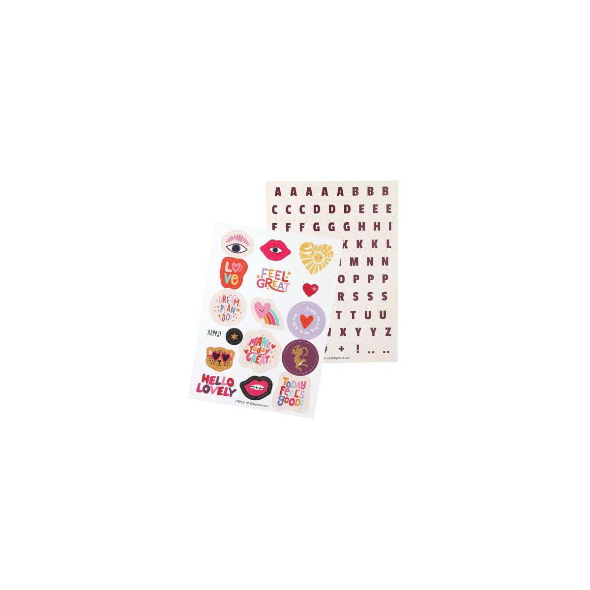 Las Pegatinas PENfection son el complemento perfecto para niñas y niños que disfrutan decorando sus objetos favoritos con mensajes positivos, dibujos coloridos y detalles únicos. Este set incluye dos láminas diferentes: una llena de stickers grandes con ilustraciones típicas de la colección, como corazones, arcoíris, labios, ojos decorativos, mensajes motivadores y pequeños iconos que aportan alegría a cualquier superficie. La otra hoja contiene letras adhesivas en mayúscula para crear nombres, frases o etiquetas personalizadas.