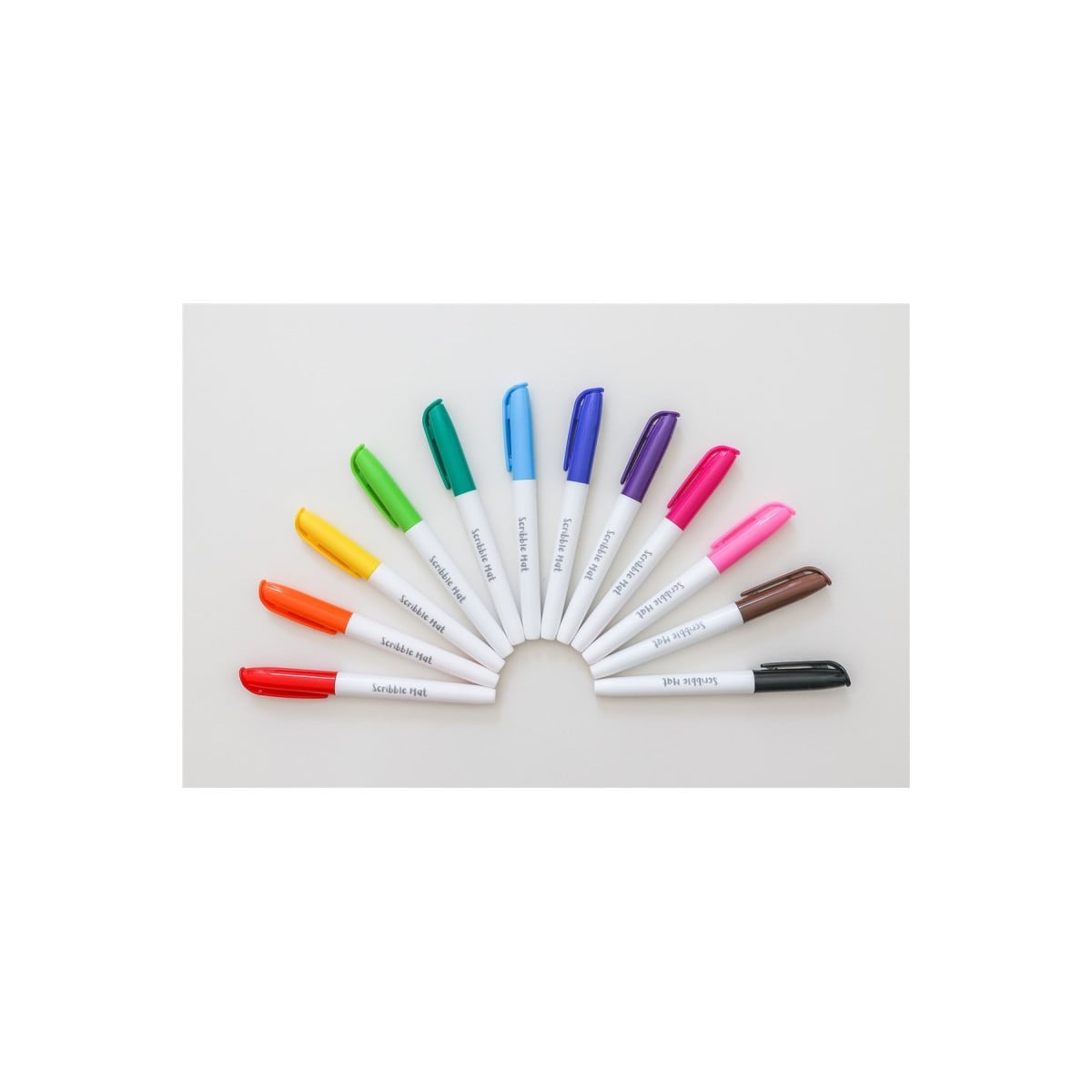 El estuche Scribble con 12 rotuladores de tiza líquida es perfecto para dar rienda suelta a la creatividad de los más pequeños. Presentado en un práctico estuche de fieltro gris, permite tener todos los colores organizados y siempre a mano, ideal para usar en casa o llevar a cualquier parte.