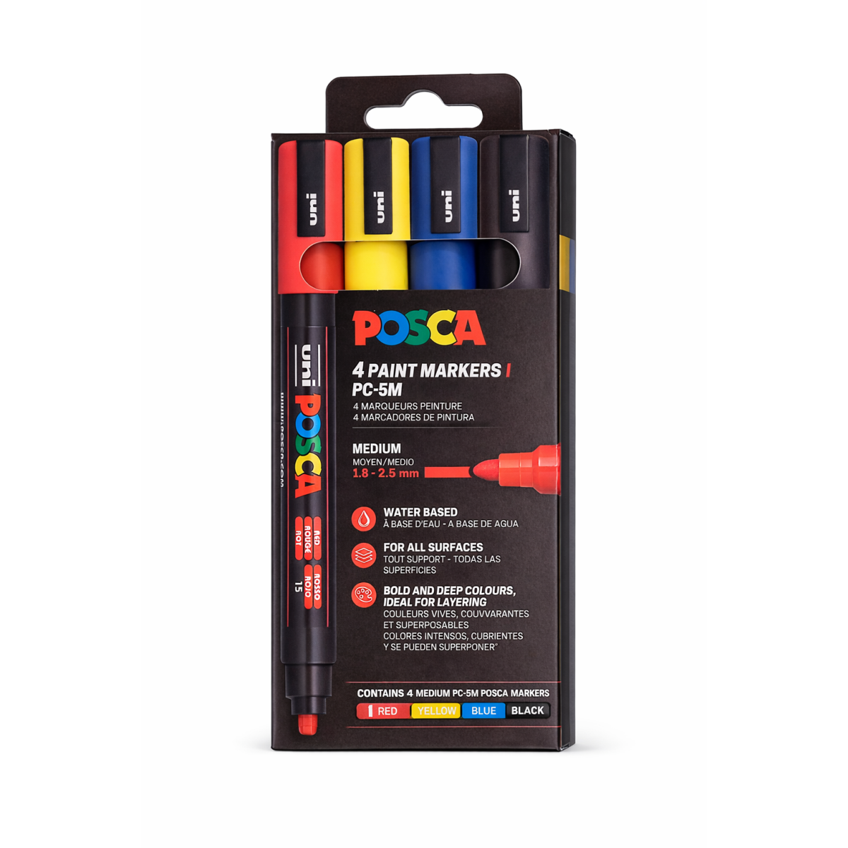 Set 4 Rotuladores Posca PC-5M Colores Básicos Punta Media 1.8-2.5 mm