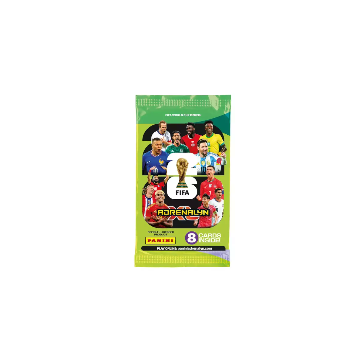 Sobres Panini Adrenalyn XL Mundial 2026 con 8 cartas sorpresa. Ideales para coleccionar, intercambiar y disfrutar del fútbol con tus jugadores favoritos.