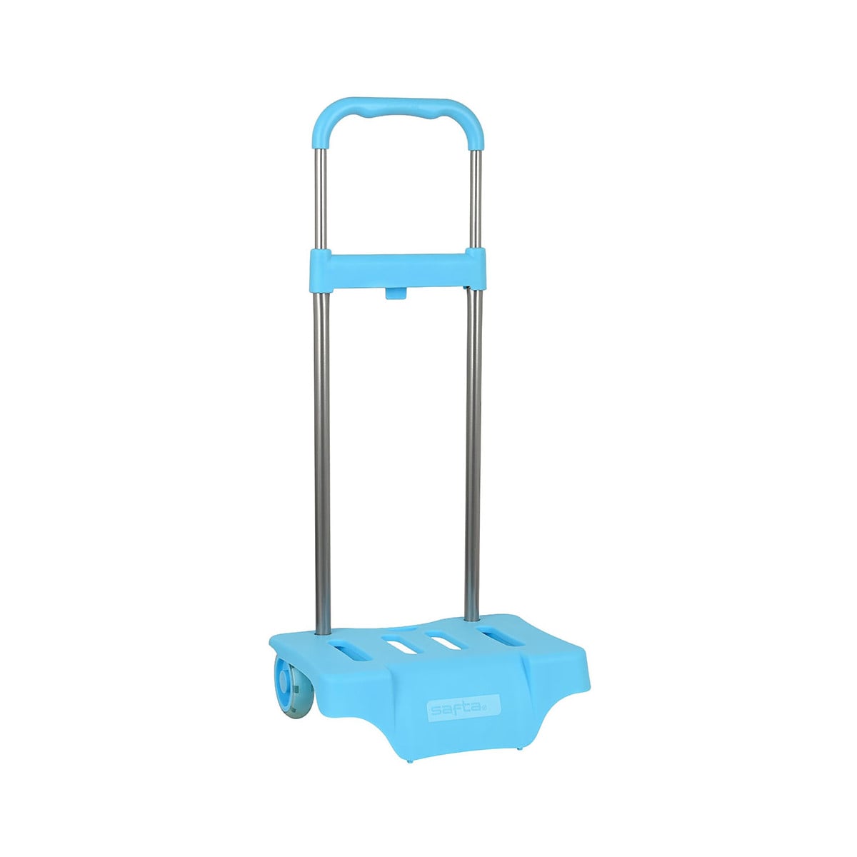 Este Carro Portamochilas Azul Celeste cuenta con una asa telescópica ajustable, permitiendo adaptarse a diferentes alturas y ofreciendo un manejo ergonómico. Sus ruedas de goma resistentes y silenciosas garantizan un desplazamiento suave sobre distintas superficies, mientras que su base amplia y estable proporciona un buen equilibrio para evitar caídas o balanceos.