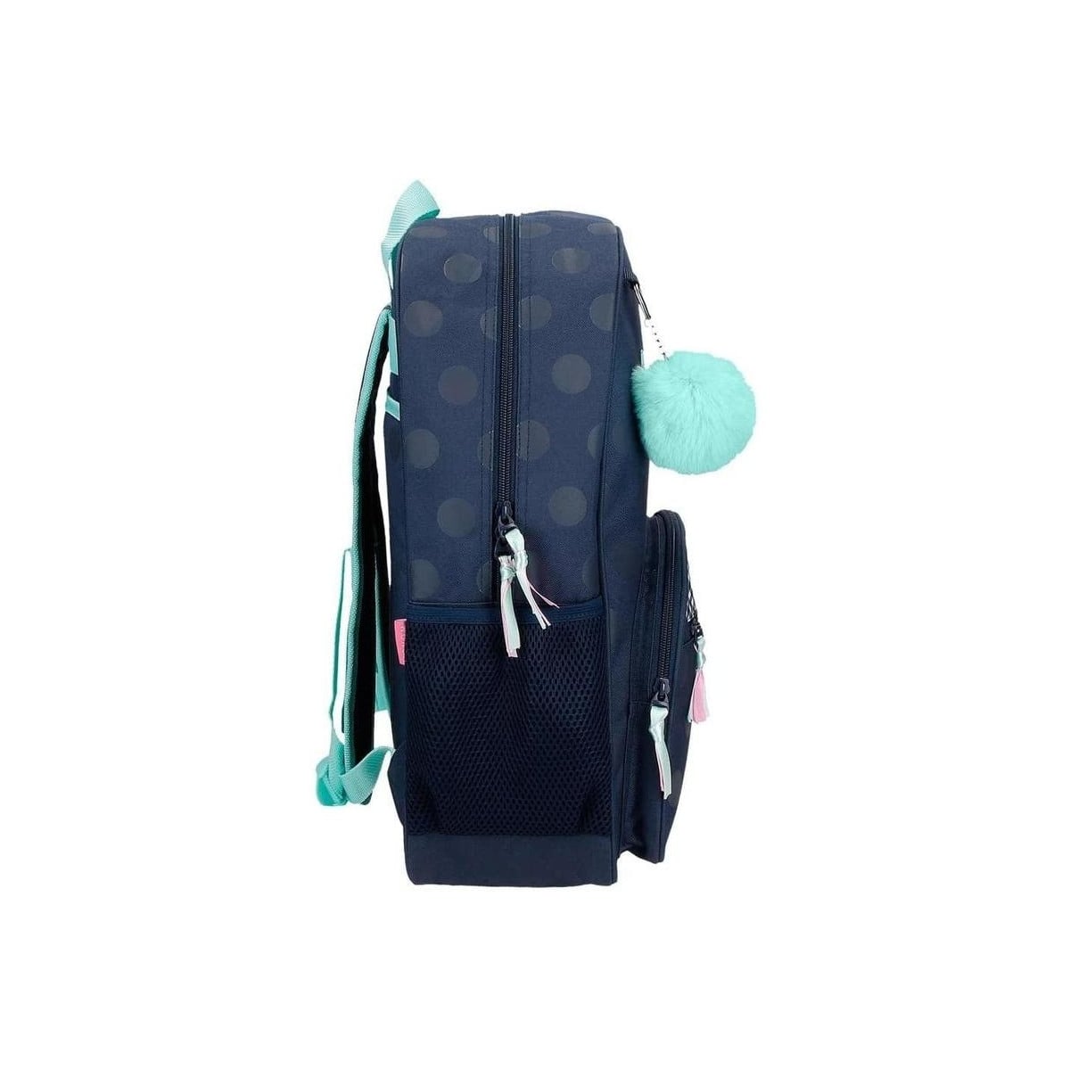 Mochila para colegio adaptable a carro con un alegre diseño con pompones.