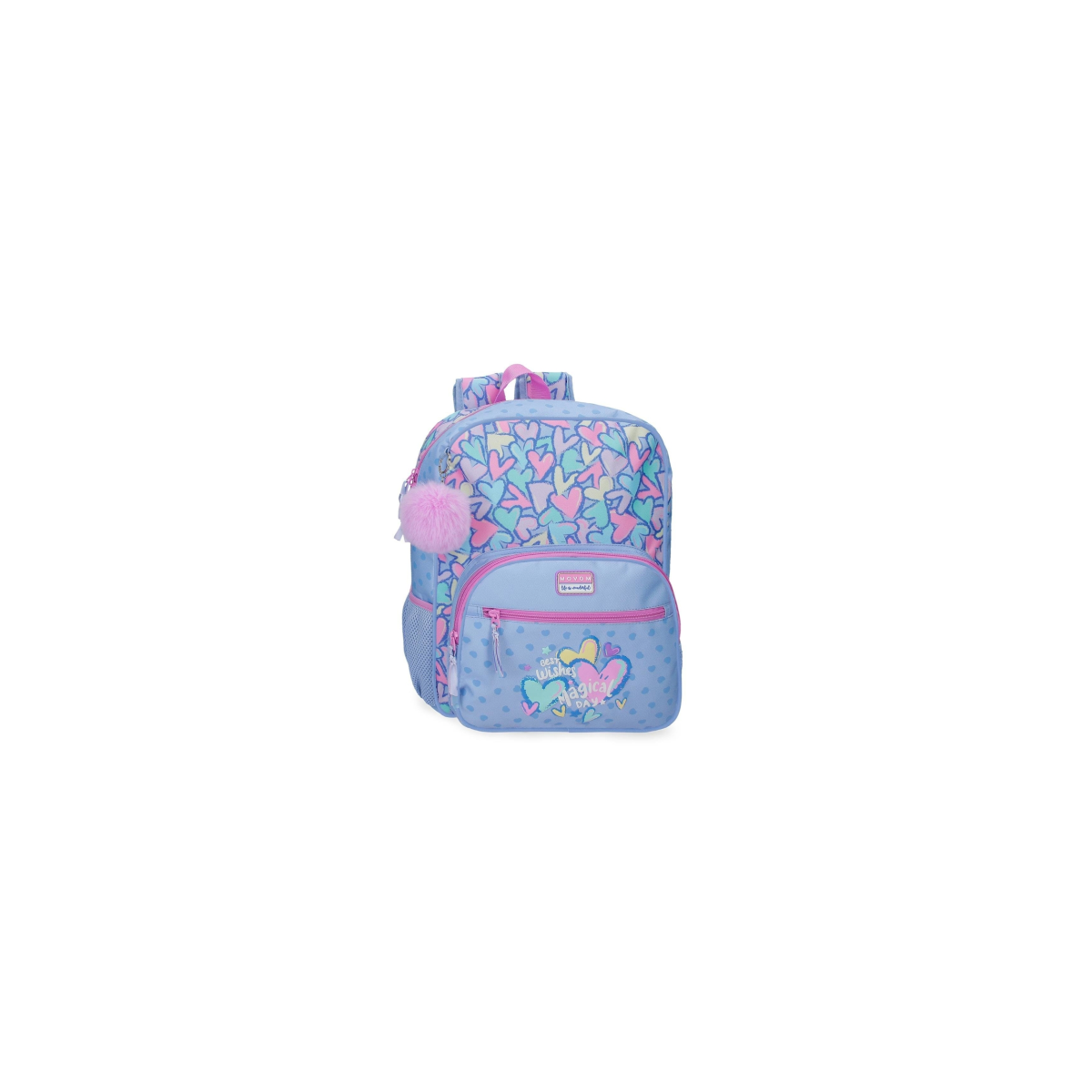 Mochila Best Wishes Magical Day adaptable a carro (no incluido), con compartimentos amplios y diseño de corazones. Práctica y cómoda para el cole.