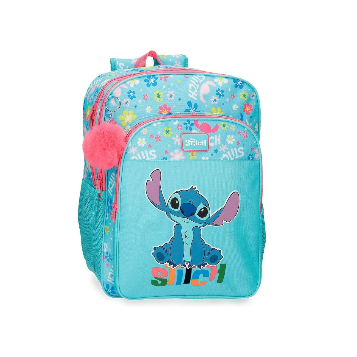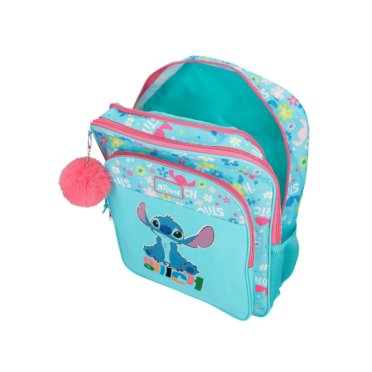 - Diseño: Mochila escolar con diseño de Stitch, doble departamento grande con cremallera, bolsillo exterior, hombreras y espalda ergonómicas. Bolsillo lateral para botella.
