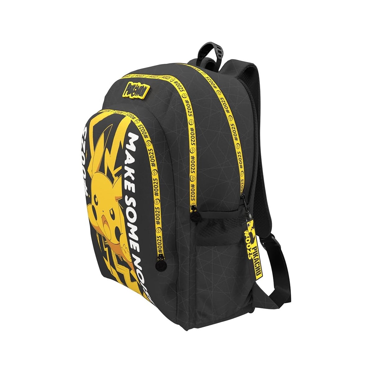 Mochila escolar Pokémon Pikachu con 3 compartimentos, tirantes acolchados y opción trolley. Resistente, cómoda y perfecta para el cole.