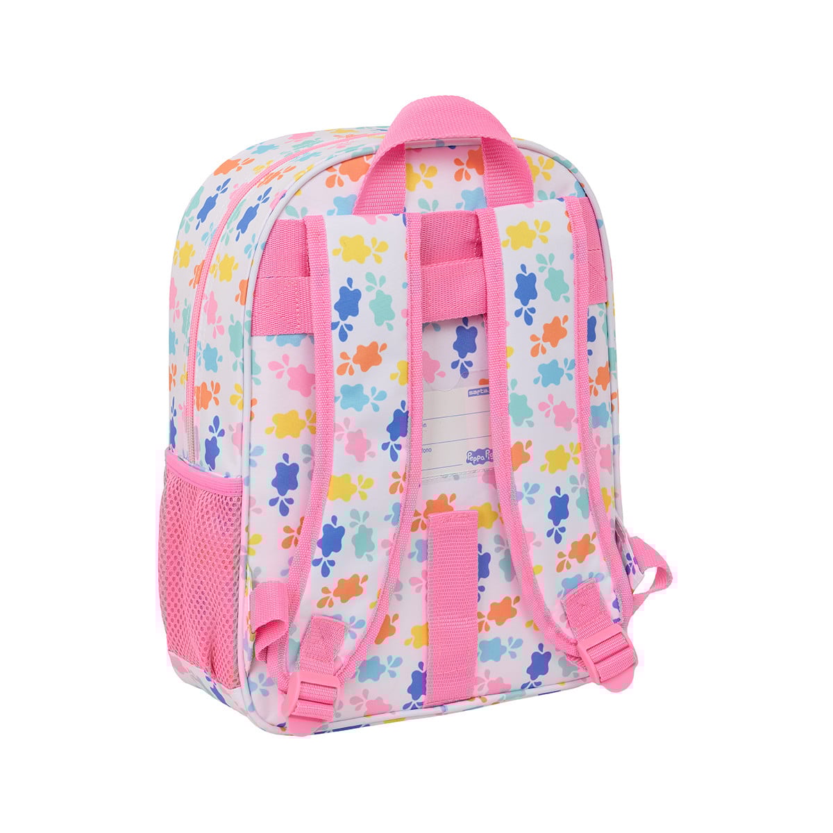 Su diseño lleno de colores y formas con los personajes de Peppa Pig transmite alegría y cercanía, convirtiéndola en una mochila que encanta desde el primer momento. El bolsillo frontal de gran tamaño facilita organizar objetos de uso frecuente, mientras que el compartimento principal ofrece espacio suficiente para guardar todo lo necesario de forma ordenada.