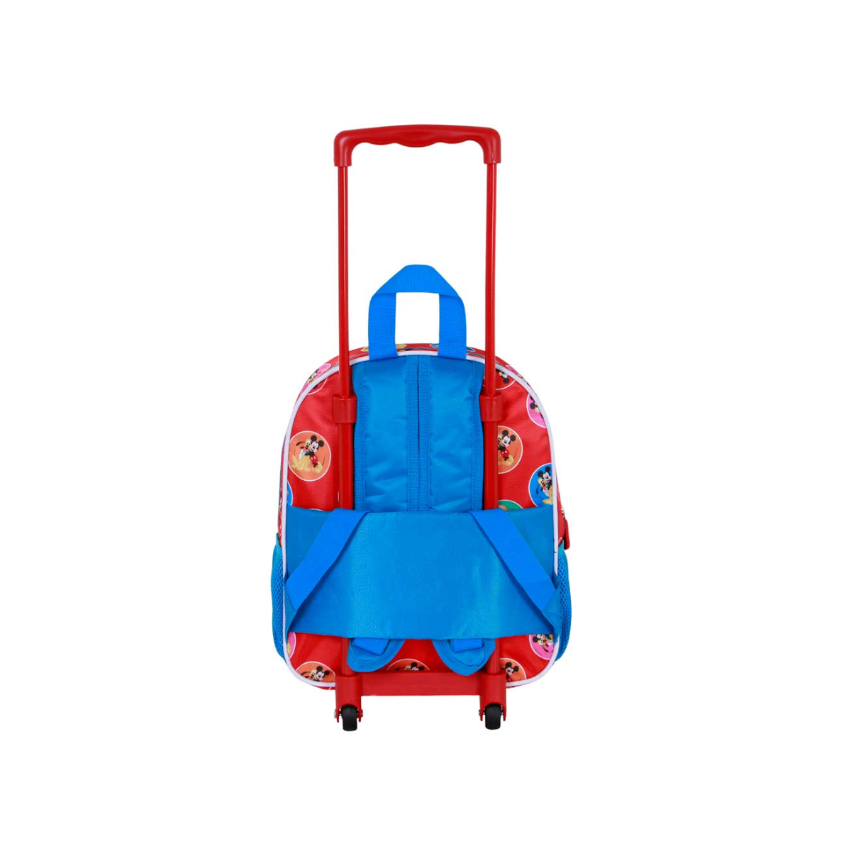 - Diseño: Mochila escolar con diseño de Mickey Mouse, un departamento grande con cremallera, carro incluído, hombreras y espalda ergonómicas.