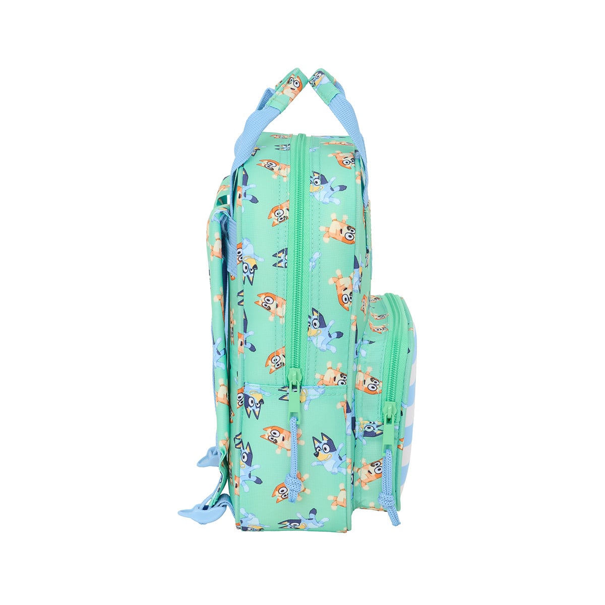 - Diseño: Estampado Bluey y Bingo con bolsillo frontal decorado que aporta un toque divertido.