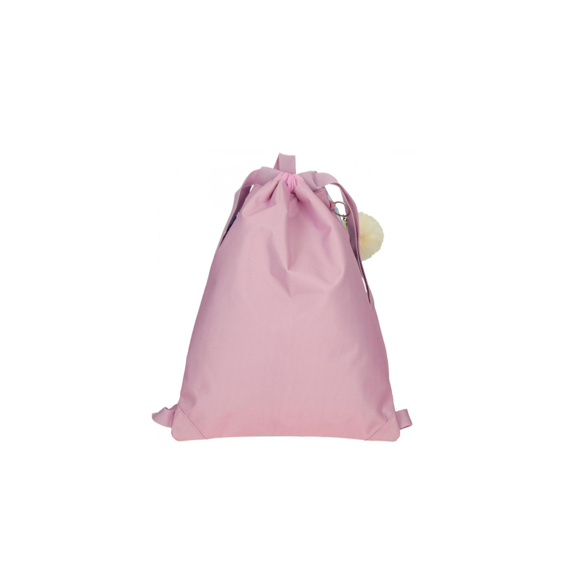 - Diseño: Saco de merienda con un único compartimento amplio, bolsillo exterior y diseño de Stitch en color rosa.