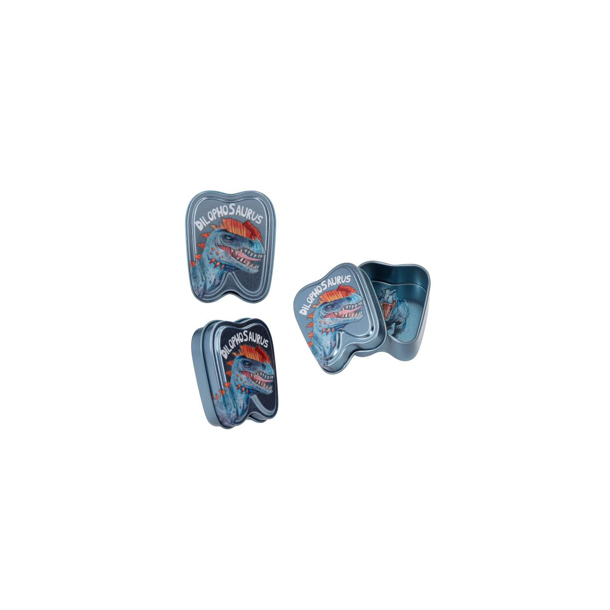 ¡Pequeñas, resistentes y con mucha garra! Las latitas metálicas Dino World son el accesorio perfecto para peques fanáticos de los dinosaurios. Disponibles en tres modelos distintos con ilustraciones vibrantes de T-Rex (verde o naranja) y Dilophosaurus (azul), estas cajitas compactas son ideales para guardar pequeños tesoros, chuches, dientes caídos, gomitas, canicas o lo que a cada aventurero jurásico se le ocurra.