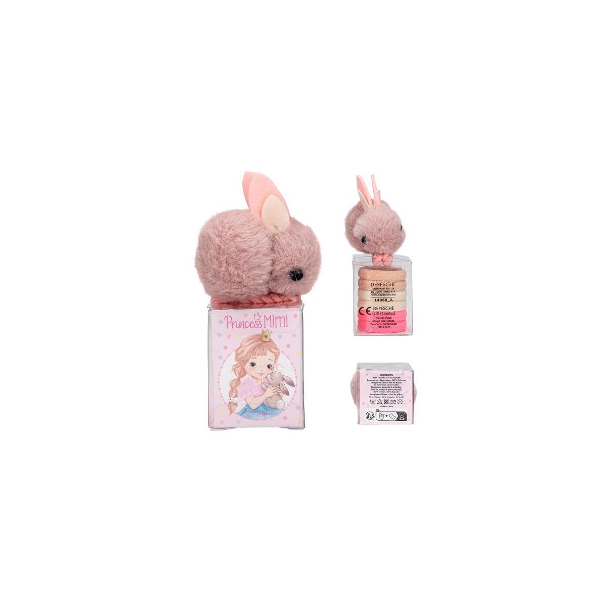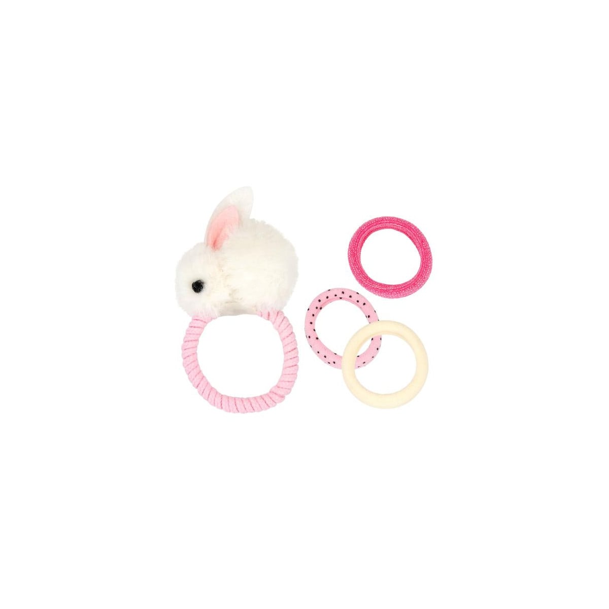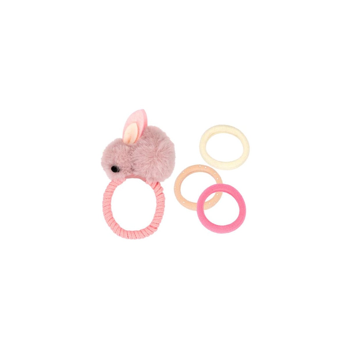 Set de gomas Princess Mimi surtido con conejito y purpurina. Incluye 7 piezas variadas, ideal para peinados dulces y divertidos.