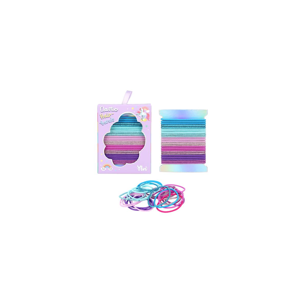 Su material elástico proporciona una sujeción cómoda y segura, adaptándose fácilmente a diferentes tipos de cabello sin tirones. Además, la bonita presentación en caja con ventana troquelada y diseño de unicornio convierte este set en un regalo encantador para las más pequeñas de la casa. Ya sea para recoger el cabello en una coleta, hacer trenzas o decorar un moño, estos coleteros harán que cada peinado sea aún más especial.
