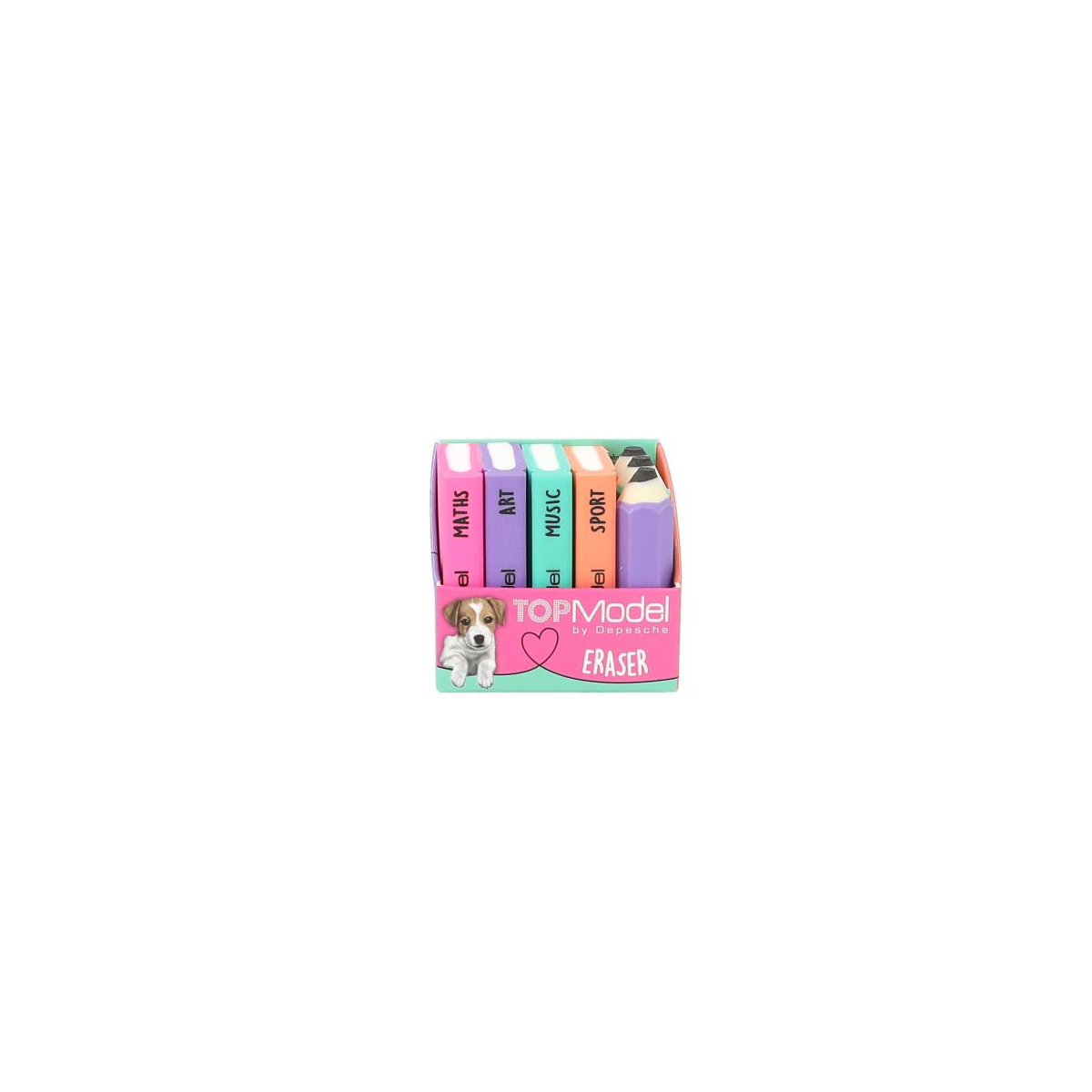 Las gomas vienen presentadas en una práctica cajita transparente que permite guardarlas de forma ordenada y llevarlas fácilmente en la mochila. Cada goma está inspirada en los colores y formas típicas del mundo TOPModel, por lo que aportan un toque de fantasía y creatividad a cualquier rincón del escritorio. Además, gracias a su tamaño reducido, son muy cómodas de manejar para niñas y niños, incluso durante sus primeras actividades escolares.