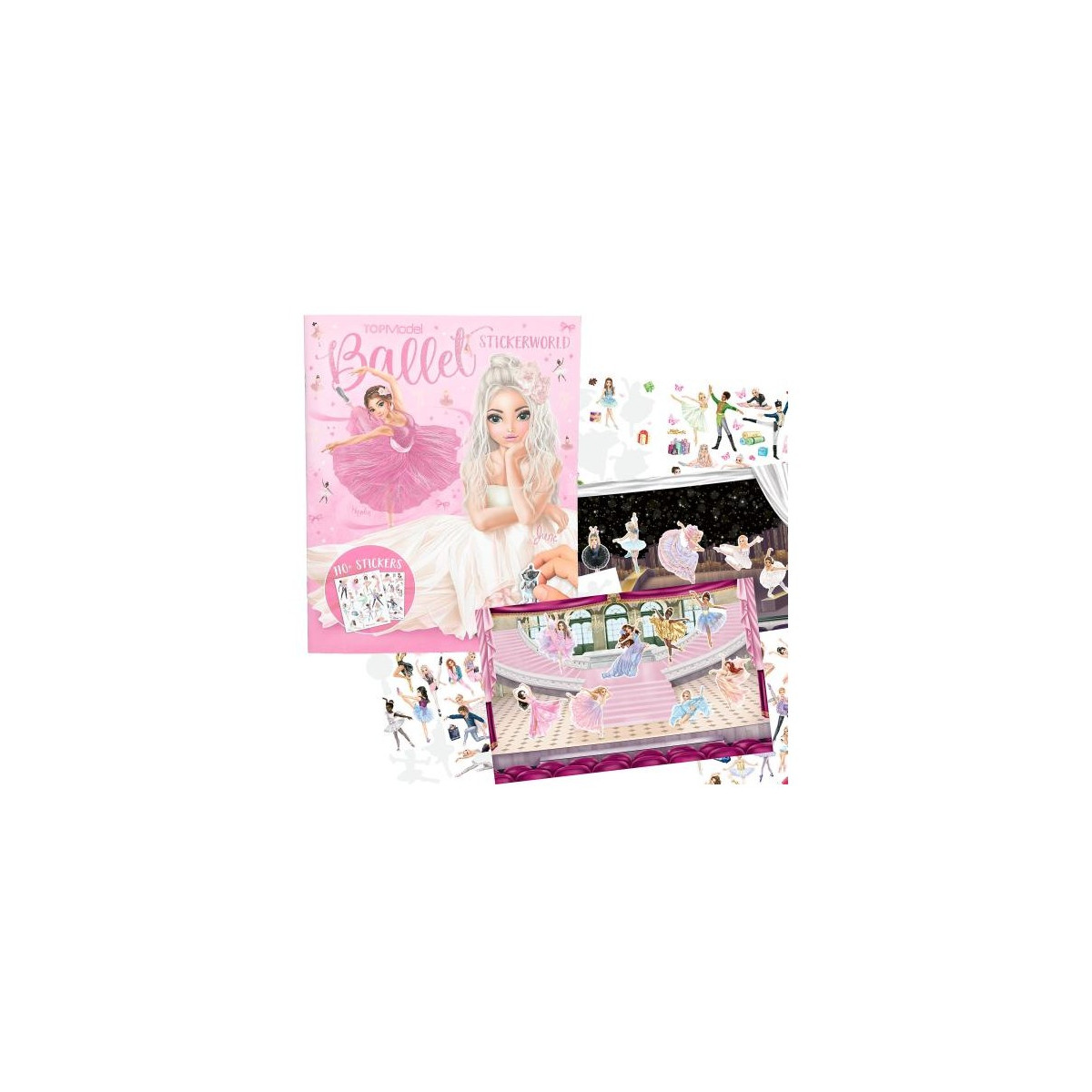 Descubre el mundo TOP Model Stickerworld Ballet con más de 100 pegatinas reutilizables y escenarios mágicos para crear tu propia función de danza clásica.