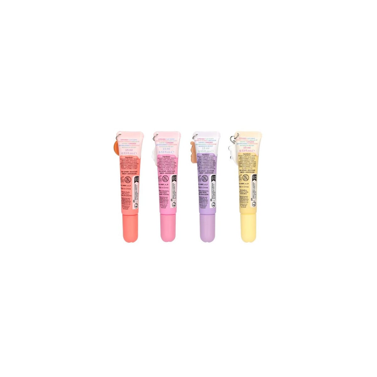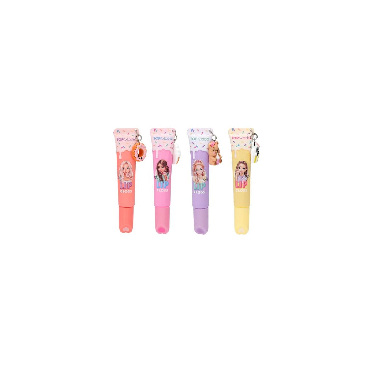 Brillo de labios TOPModel con colgante en 4 diseños y aromas. Aporta brillo y color con acabado suave. Formato práctico de 15 ml ideal para llevar.