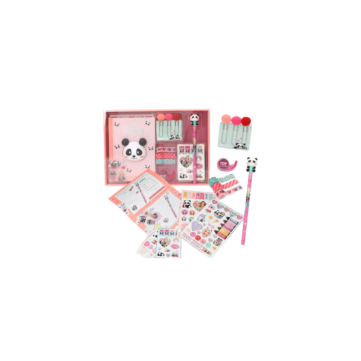 Este set de TopModel Create Your Diary es todo lo que niñas y niños necesitan para empezar su propio diario creativo lleno de personalidad. Está pensado para quienes disfrutan escribiendo, decorando y dejando volar la imaginación en cada página. El diario viene con una portada adorable de panda y un interior listo para llenarlo de momentos especiales, dibujos, ideas o pequeños recuerdos del día a día.