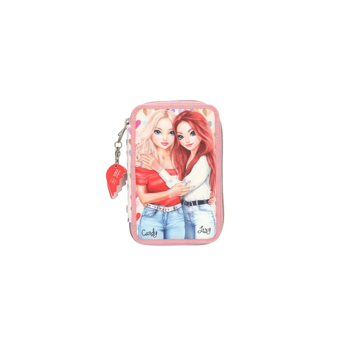 Diseñado por Depesche dentro de la colección TOPModel, este estuche destaca por su estilo cuidado y atractivo. Cuenta con dos compartimentos separados con cremallera, lo que permite distribuir mejor el contenido y mantener cada elemento en su lugar. Su diseño con detalles decorativos lo convierte en un accesorio llamativo que gusta especialmente a quienes siguen esta colección.
