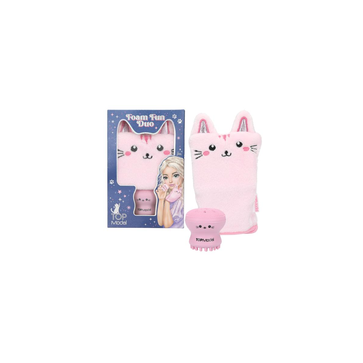 El TOPModel Set de Guante y Esponja Beauty & Me es el aliado perfecto para una rutina de limpieza divertida, práctica y llena de estilo. Este pack incluye un suave guante de lavado con diseño de gatito, confeccionado en tejido agradable al tacto, y una esponja facial en formato ergonómico, con acabado en silicona y pequeñas cerdas que ayudan a limpiar la piel en profundidad sin causar irritaciones.