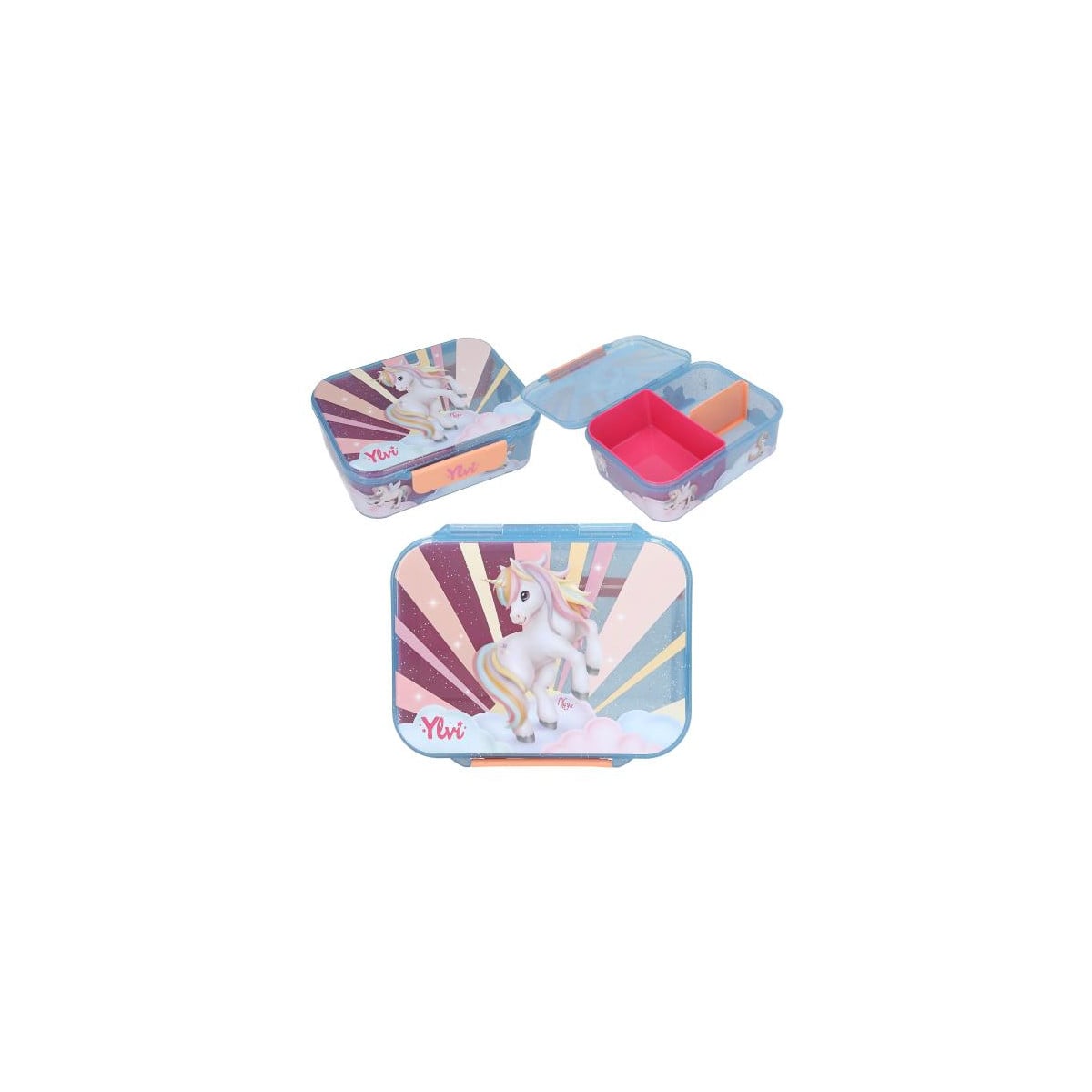 Fiambrera Ylvi Sugar Pop con diseño de unicornio y colores pastel. Práctica, ligera y perfecta para llevar almuerzo o merienda.