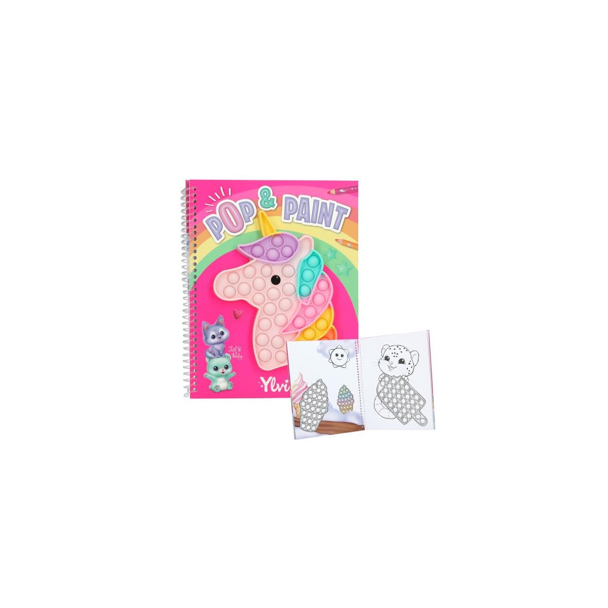 Libro para colorear Ylvi Pop+ Paint con dibujos, pegatinas y elemento sensorial. Ideal para niños y niñas que disfrutan creando y pintando.