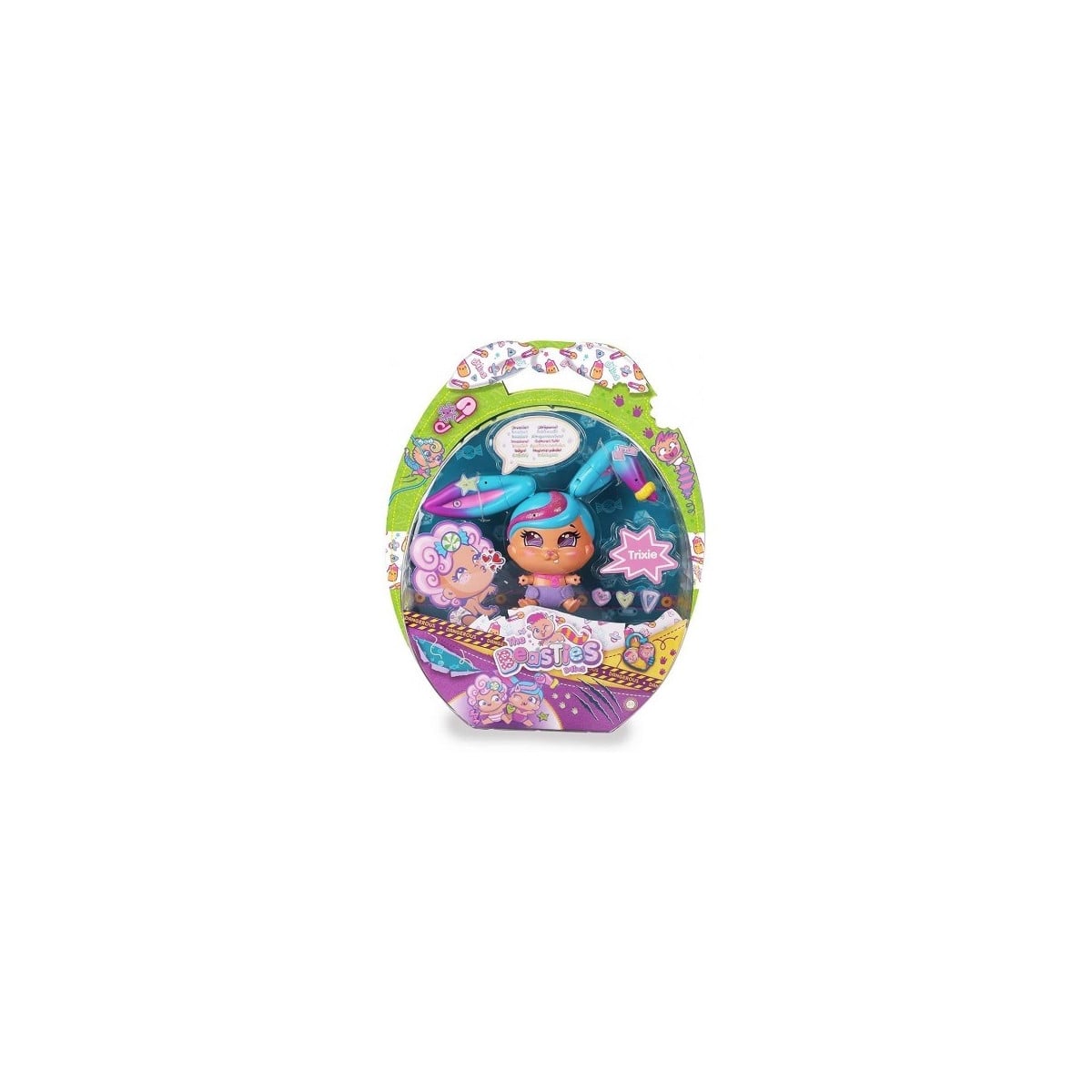 - Incluye: figura de Trixie, accesorios para decorar sus orejas y pañal