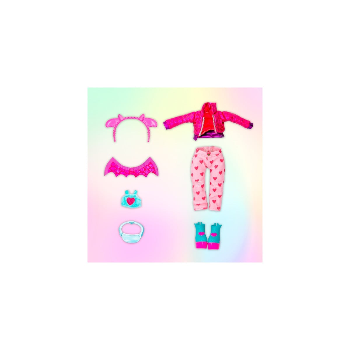 - Incluye ropa a la moda y accesorios.