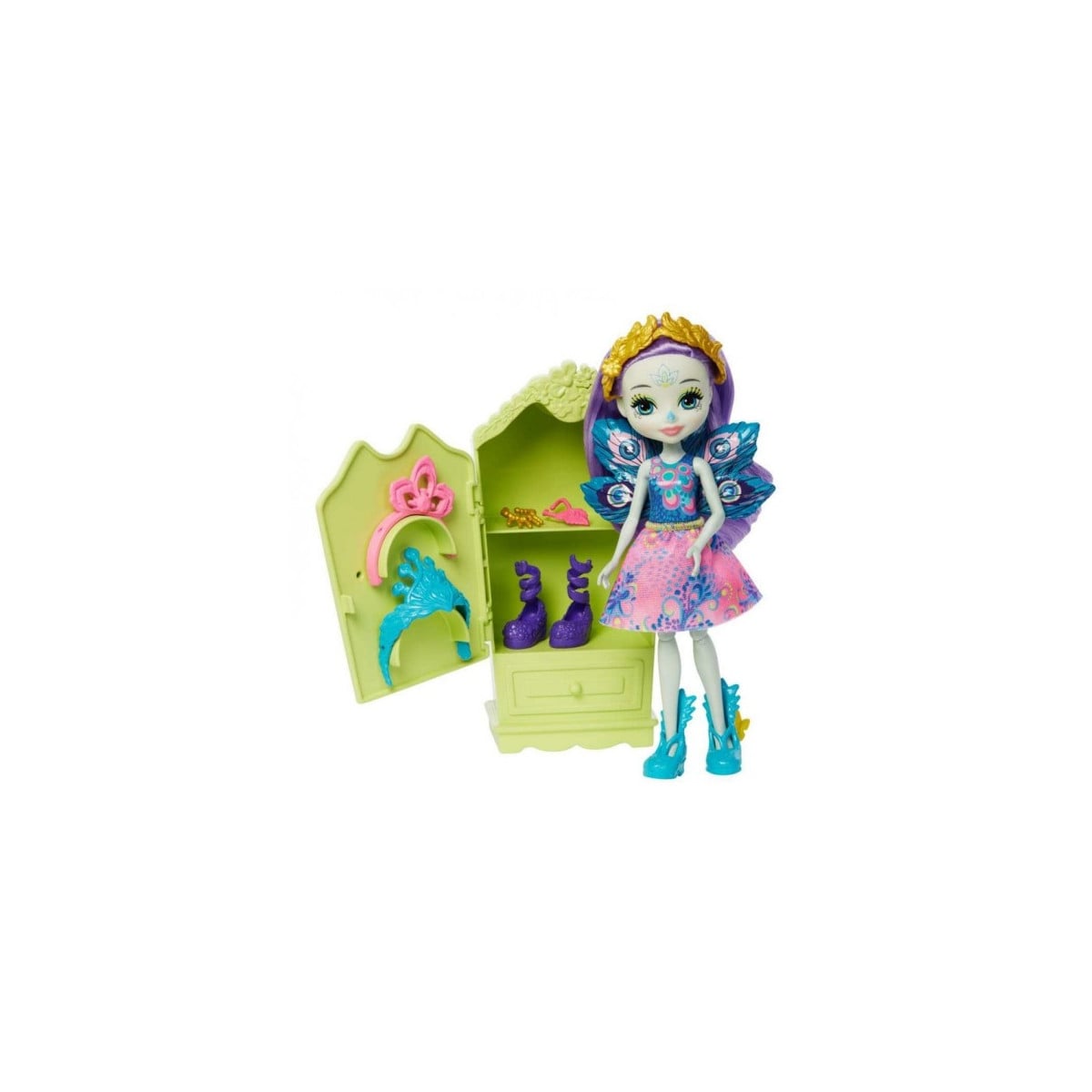 Patter Peacock y Flap son los reyes del disfraz. Les encanta pasar las tardes en casa jugando a personajes e inventando nuevas historias. Incluye: 1 casita, 1 muñeca, 1 figura de animal y 8 accesorios.