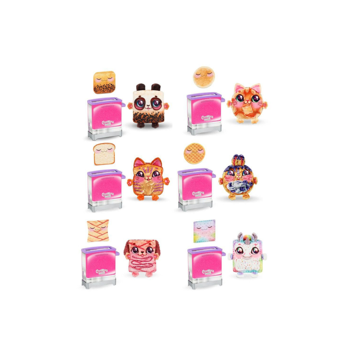 Los Cookeez Makery Tostadas Mágicas Surtido permiten a niñas y niños vivir una experiencia divertida y mágica: solo tienen que seguir los pasos para "preparar" su tostada y ¡sorpresa! Aparecerá un peluche suave, perfumado y lleno de ternura. Son modelos surtidos sopresa, cada uno con un diseño encantador inspirado en el mundo de los desayunos más dulces.