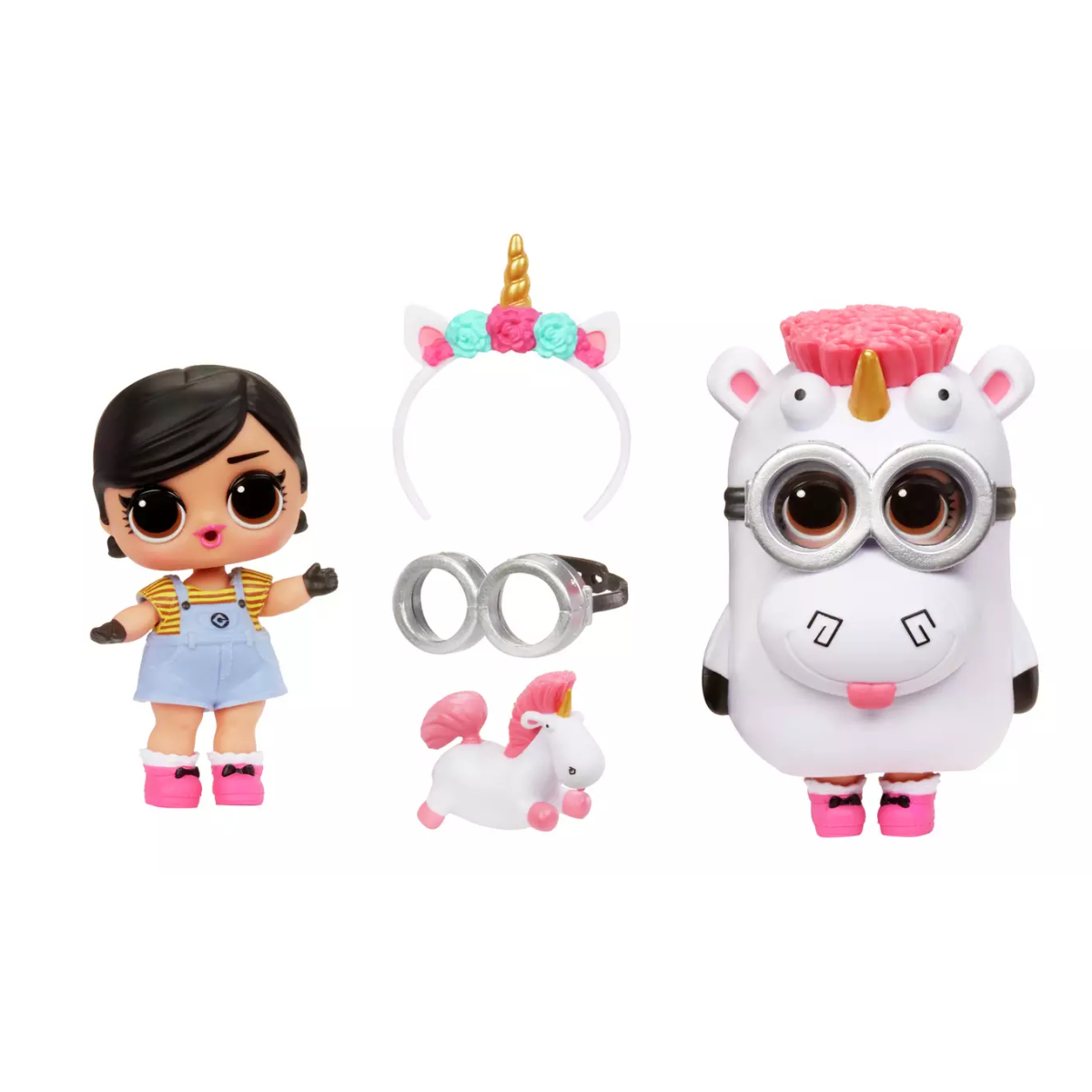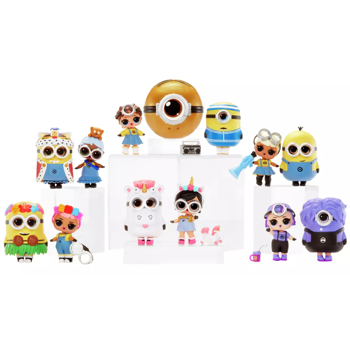 Cada bola sorpresa incluye una muñeca LOL disfrazada con looks exclusivos que homenajean a los Minions más populares, desde sus clásicos monos azules hasta trajes divertidos como el del Rey Minion, el unicornio de Agnes o incluso los Minions morados. Además, cada figura viene acompañada de accesorios que hacen el juego aún más emocionante, como gafas, peinados llamativos o complementos sorpresa.