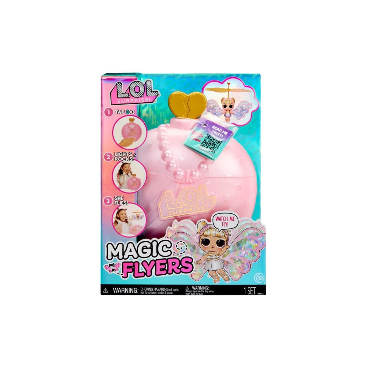 ¡LOL Surprise te invita ahora a volar! Toca la bola tres veces, empezará a emitir luces y moverse hasta que la muñeca salga volando.