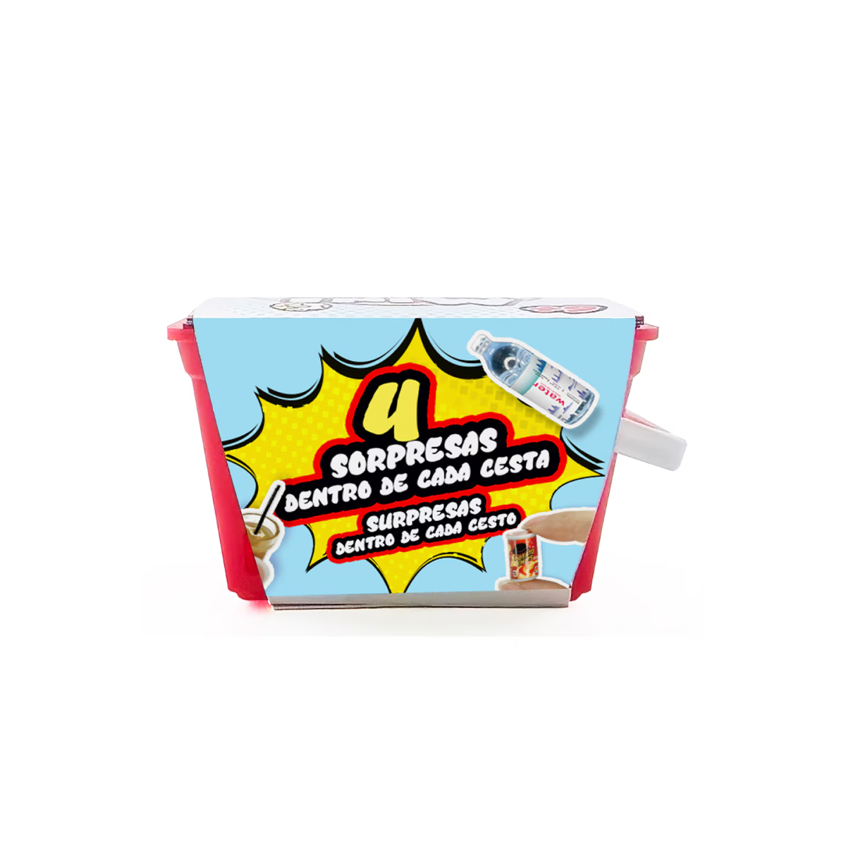 - Contenido: Incluye 1 cesta de la compra, 4 accesorios sorpresa y pegatinas para la libreta coleccionable.