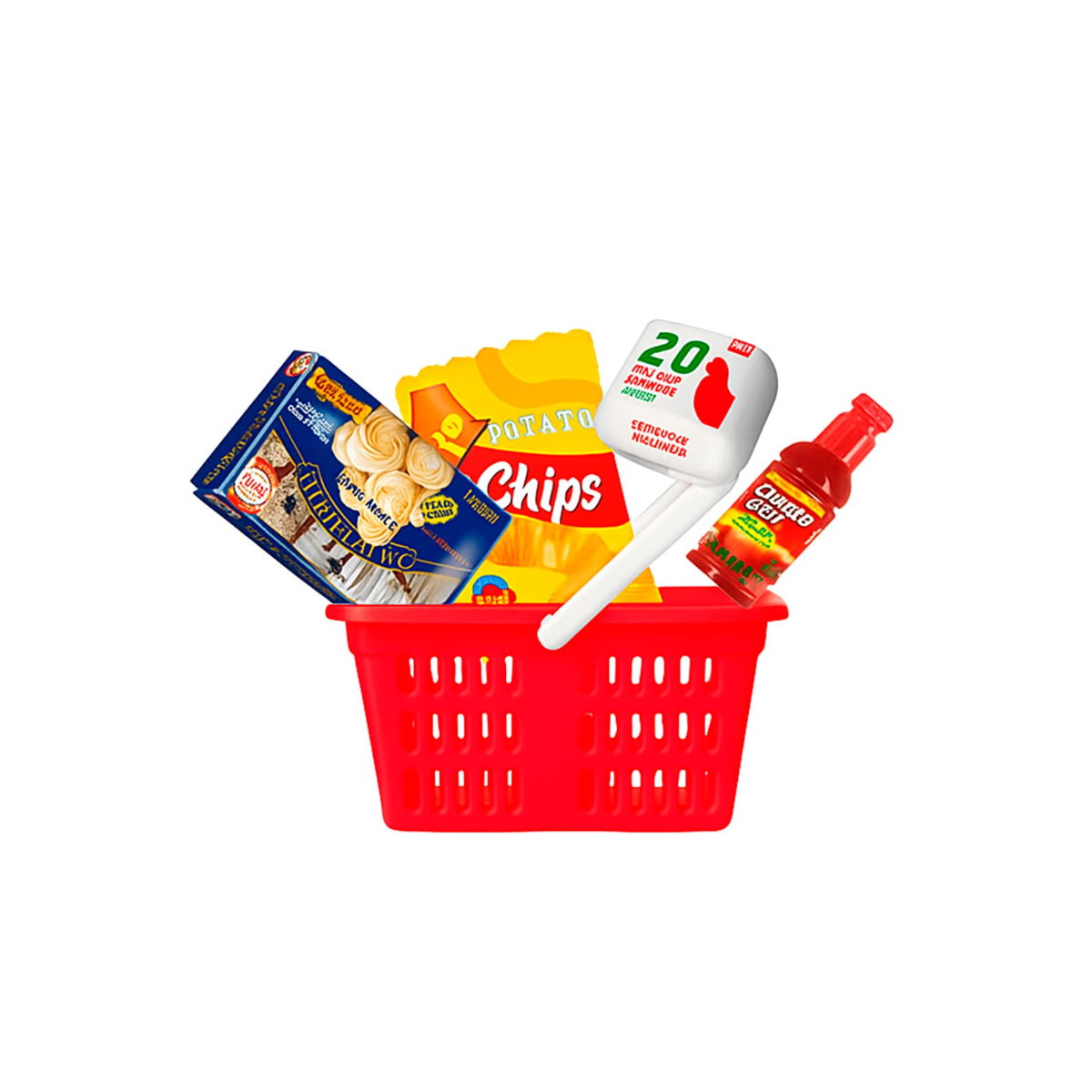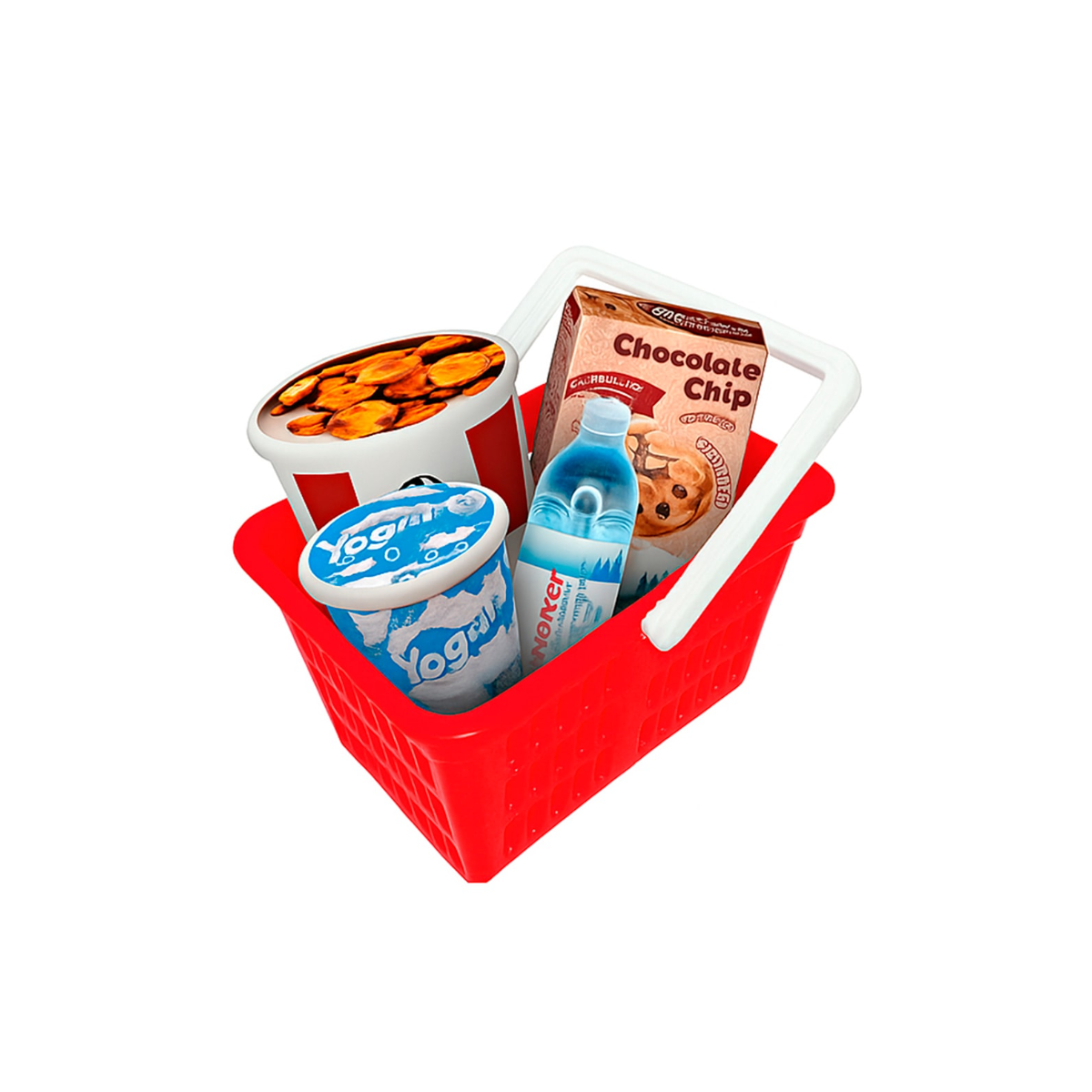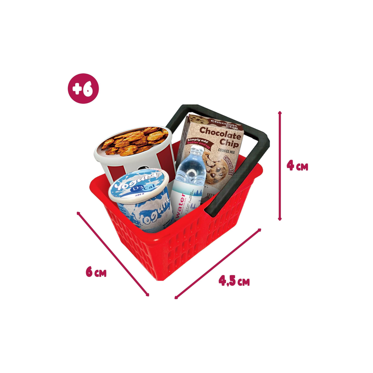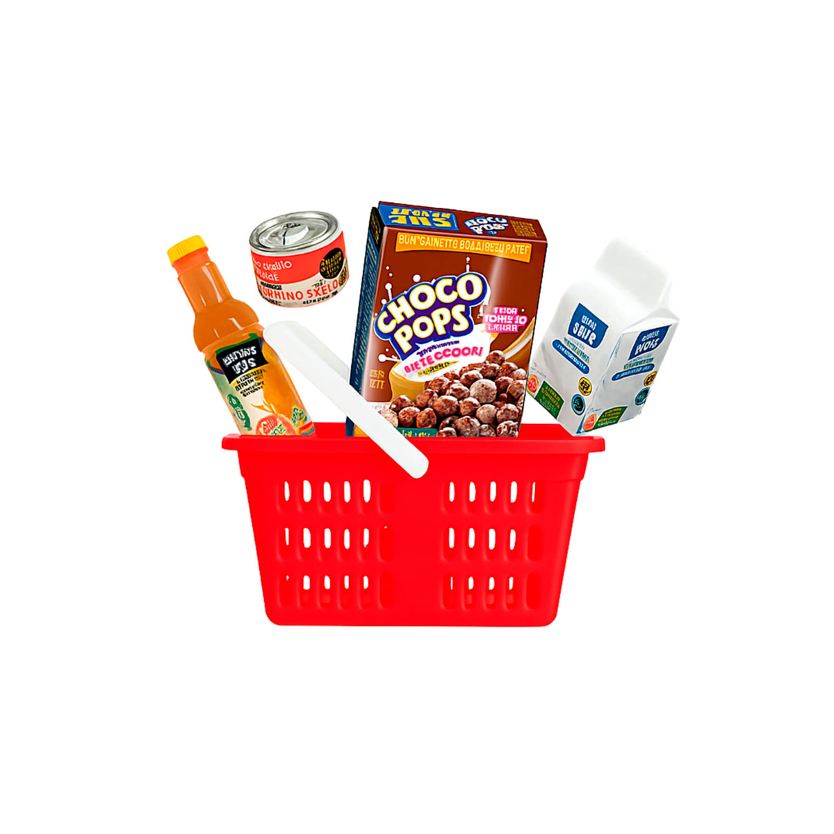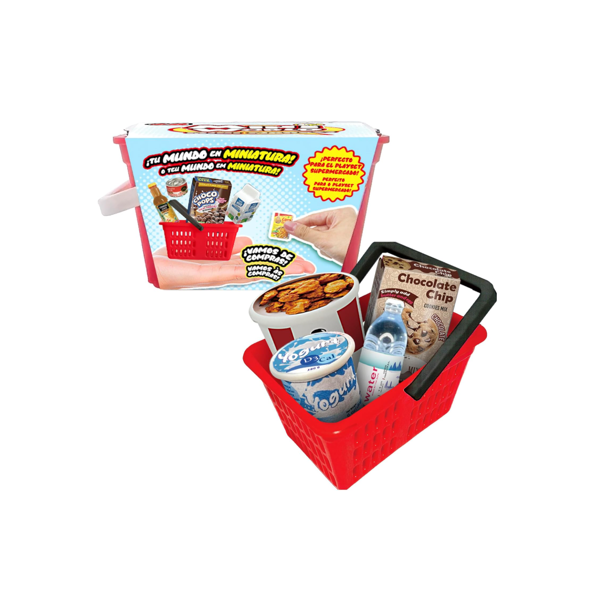 - Diseño: Mini cesta de la compra con productos de supermercado en formato miniatura, con acabados realistas y detallados.