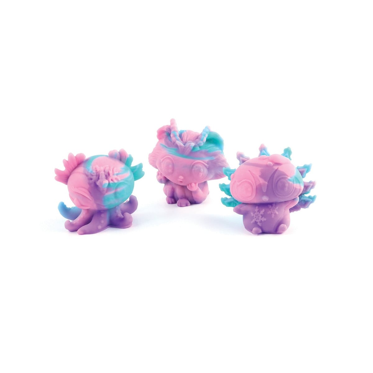 Estos pequeños personajes destacan por su textura tipo mochi, muy agradable al tacto, que invita a jugar con ellos durante horas. Son perfectos como juguetes sensoriales o antiestrés, ideales para apretar con las manos mientras se juega o se relajan.