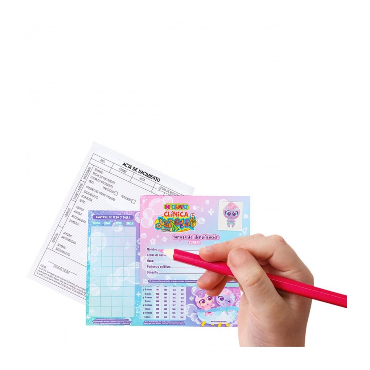 - Incluye: muñeco Neo Bebé, bañera, biberón, esponja y cartilla de nacimiento.