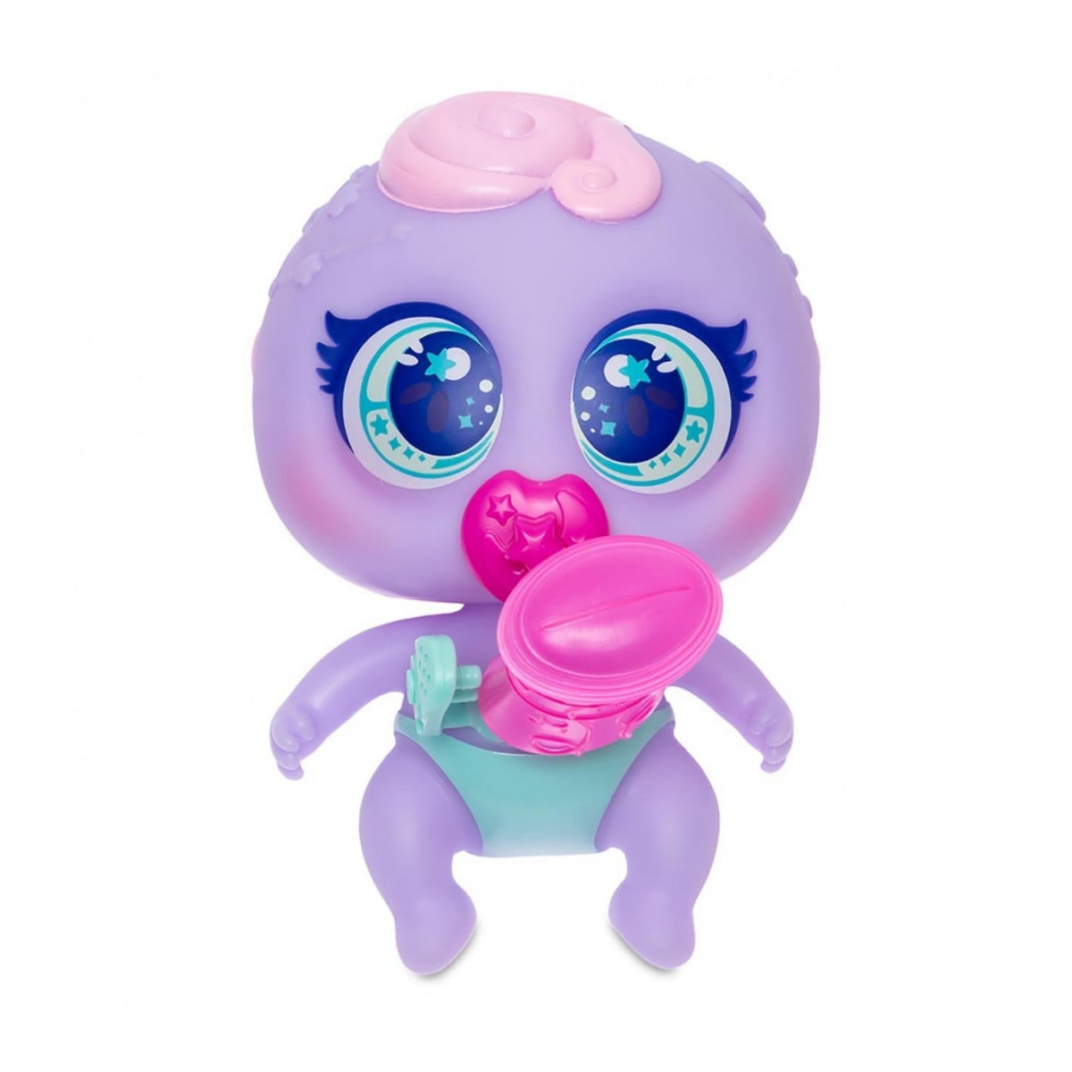 Flobbentina está débil por su viaje interestelar, por eso es necesario que le suministremos sus neo-nutrientes con el biberón incluido, y mantener su higiene con la bañera y la esponjita que incluye el pack.