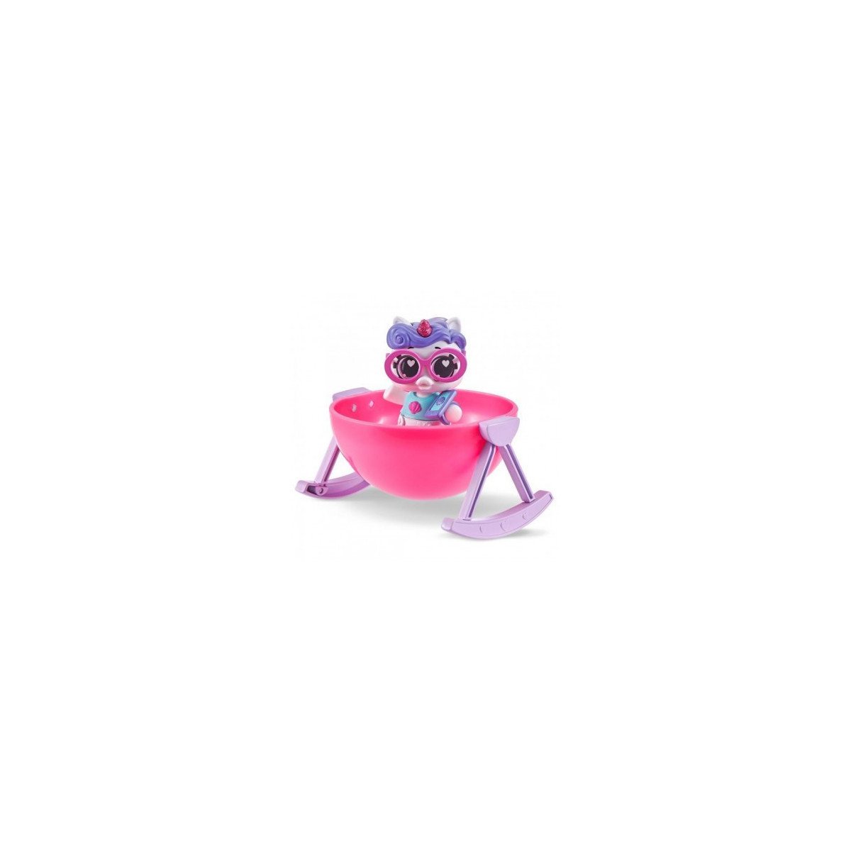 Incluye 1 bebé unicornio, 1 manta, 1 biberón y la cápsula que se convierte en cuna y bañera.
