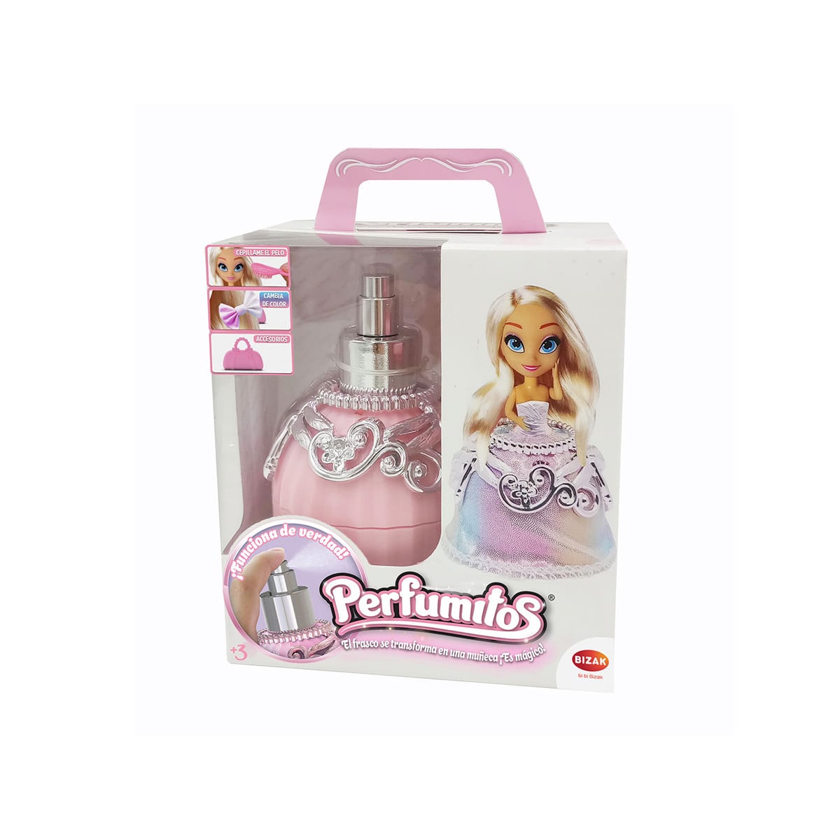 - Frasco que se transforma en muñeca: El frasco de perfume se convierte en una linda muñeca con detalles encantadores.