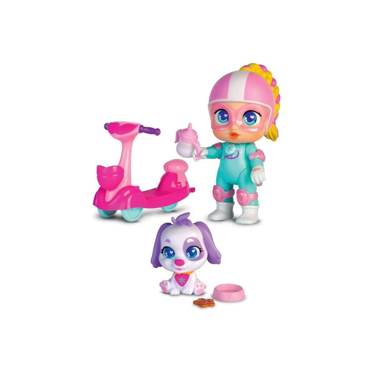 - Incluye: muñeca de 12 cm, mascota y scooter con sidecar.