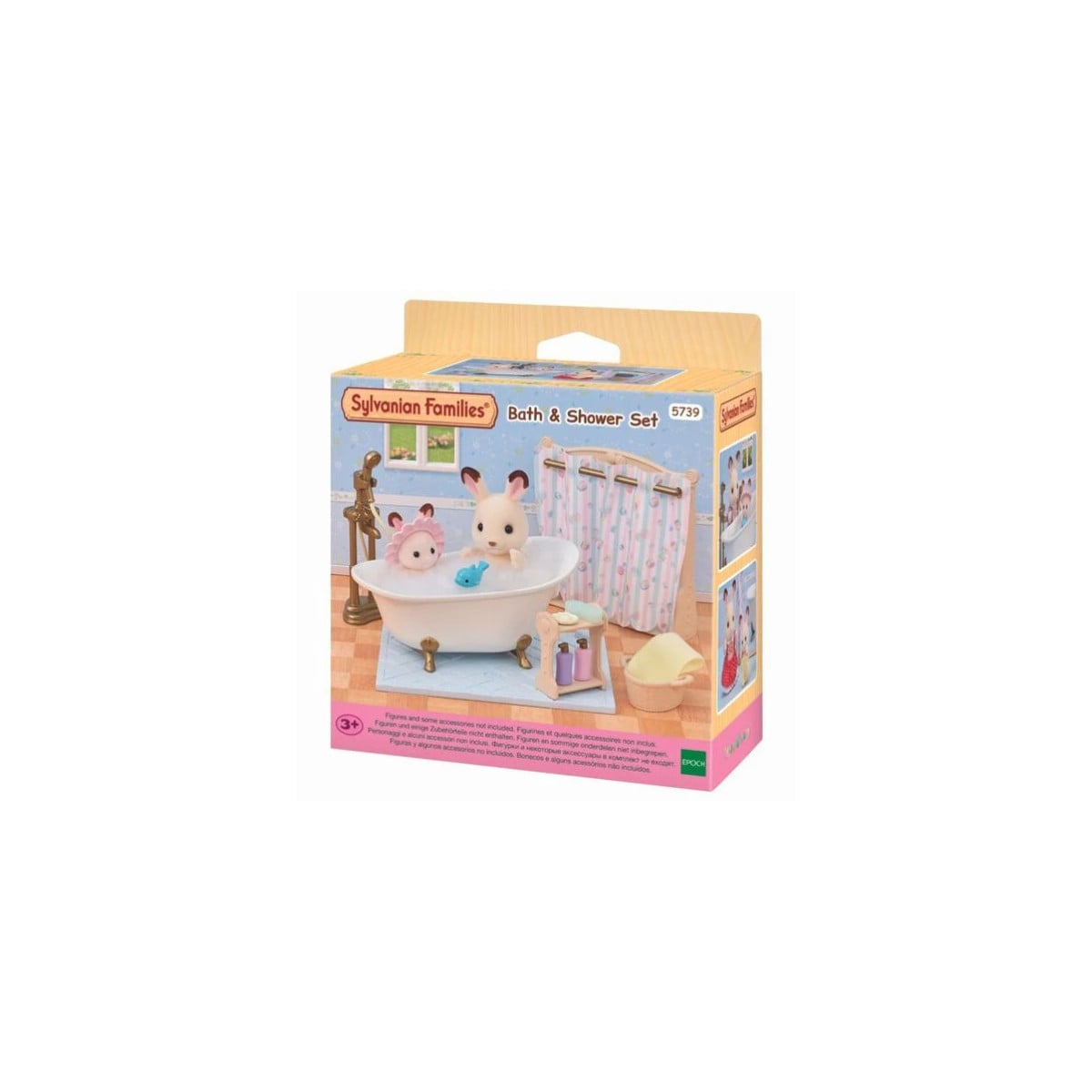 El Set de Baño y Ducha es un conjunto meticulosamente diseñado para las figuras de Sylvanian Families que incluye: