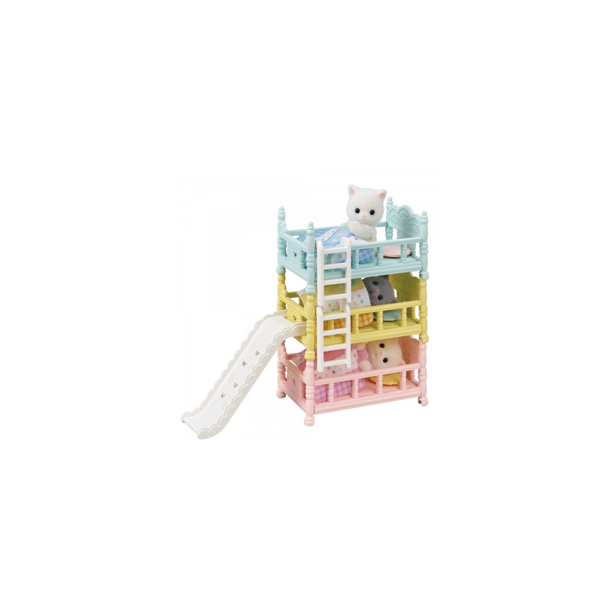 Las Triple Literas de Sylvanian Families son un encantador conjunto de muebles diseñado para las adorables figuras de la Aldea Sylvanian. Estas literas triples son ideales para completar la habitación de los pequeños habitantes de la aldea. Ya sea para que los bebés duerman todos juntos o para que el bebé pueda invitar a sus amigos, estas literas ofrecen comodidad y diversión.