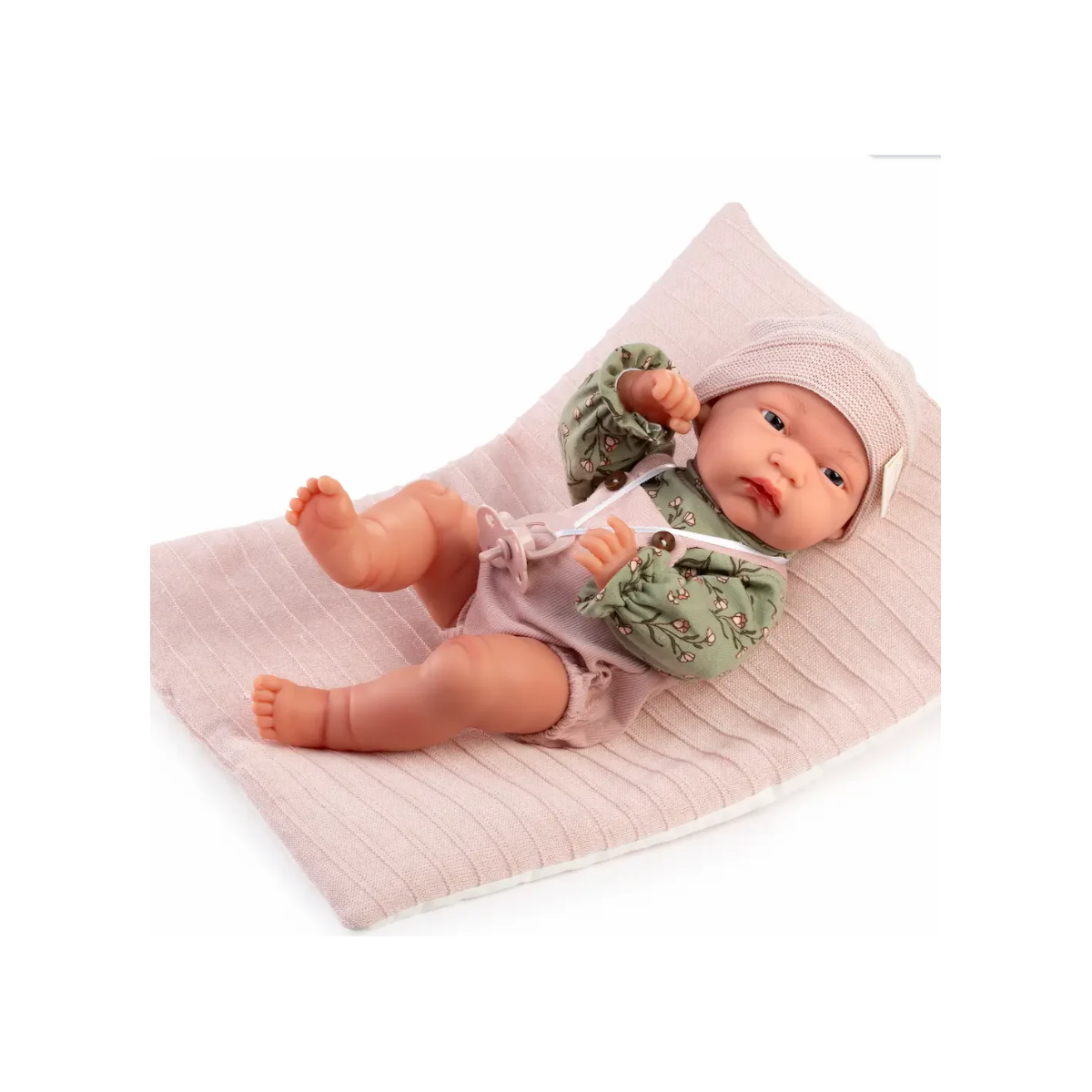 Forma parte de la colección de Muñecas Antonio Juan, reconocida por la calidad de sus materiales y la atención al detalle. Esta muñeca cuenta con un cuerpo blandito muy suave que invita al contacto y al juego afectivo, proporcionando una sensación agradable en cada interacción. Sus rasgos delicados y su expresión tranquila refuerzan ese aspecto tierno que tanto gusta a los peques.
