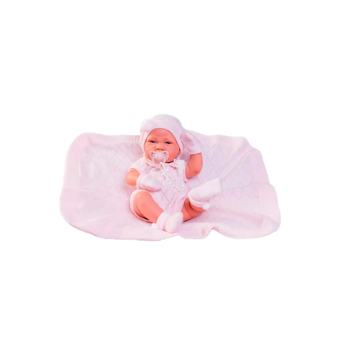 - Incluye accesorios: Pelele de punto, manoplas, calcetines, gorro, toquilla y chupete con cadena, ofreciendo múltiples opciones de juego y cuidado.