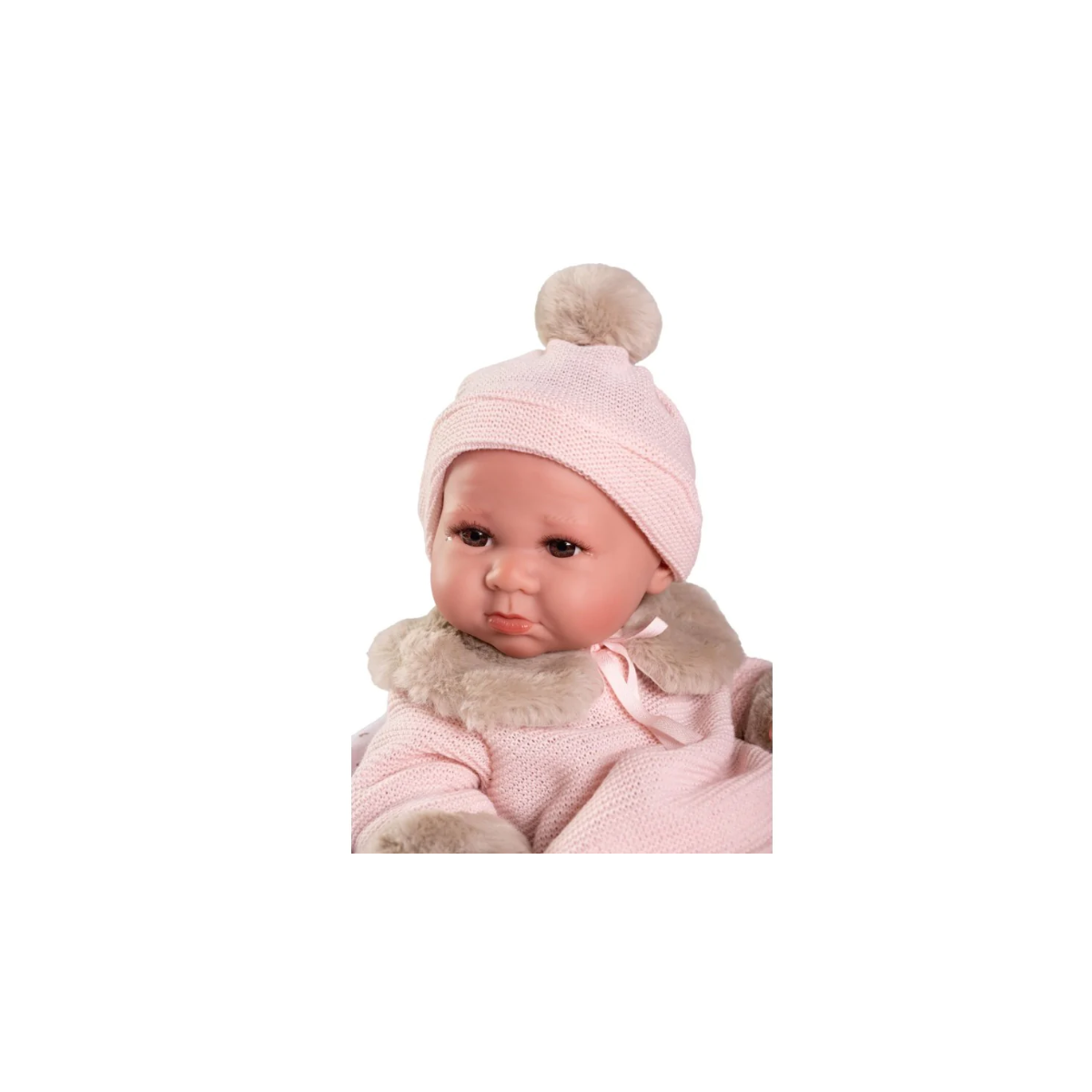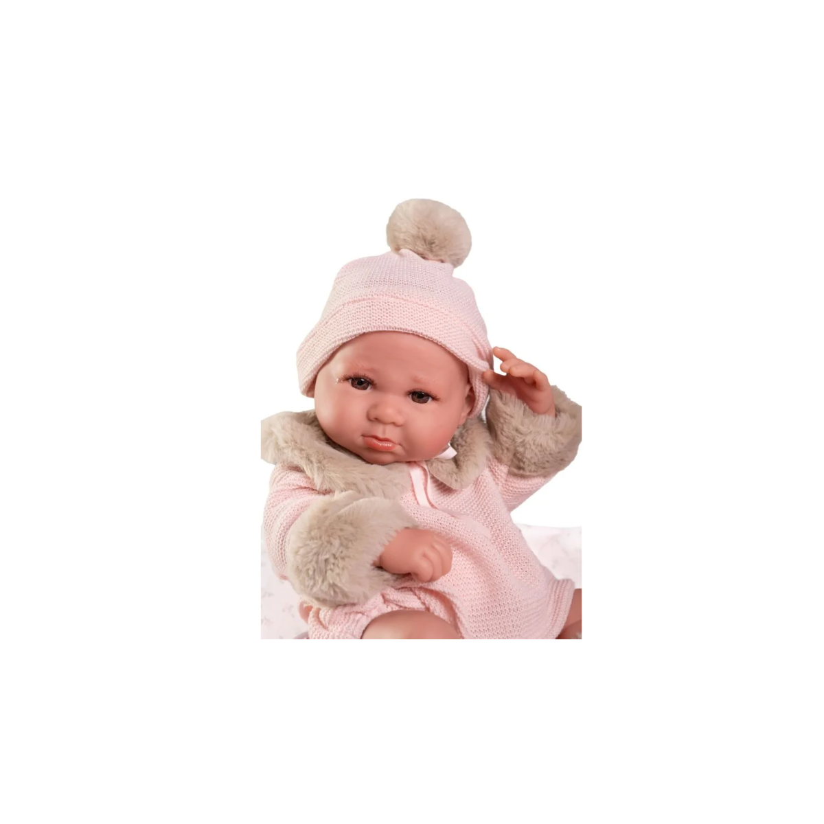El muñeco viene vestido con un adorable conjunto de punto, confeccionado con materiales suaves y resistentes, proporcionando un look encantador y acogedor. Su diseño, sumado a la calidad de los acabados, garantiza que los niños y niñas disfruten de un juguete seguro y duradero.