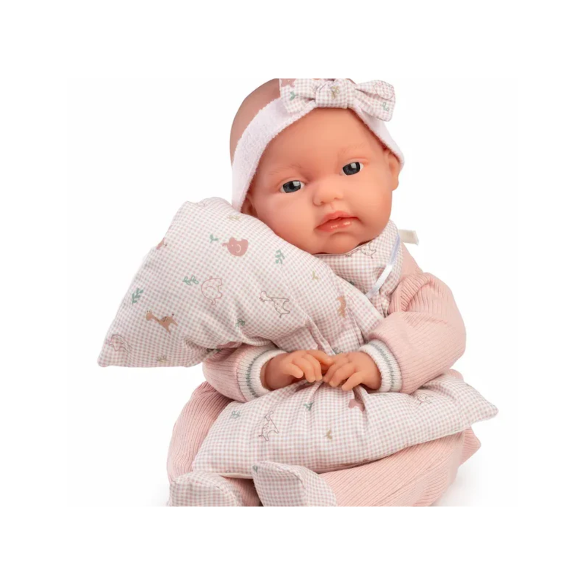 - Diseño: Muñeca bebé con rasgos dulces y expresión tierna, pensada para fomentar el apego y la conexión emocional.