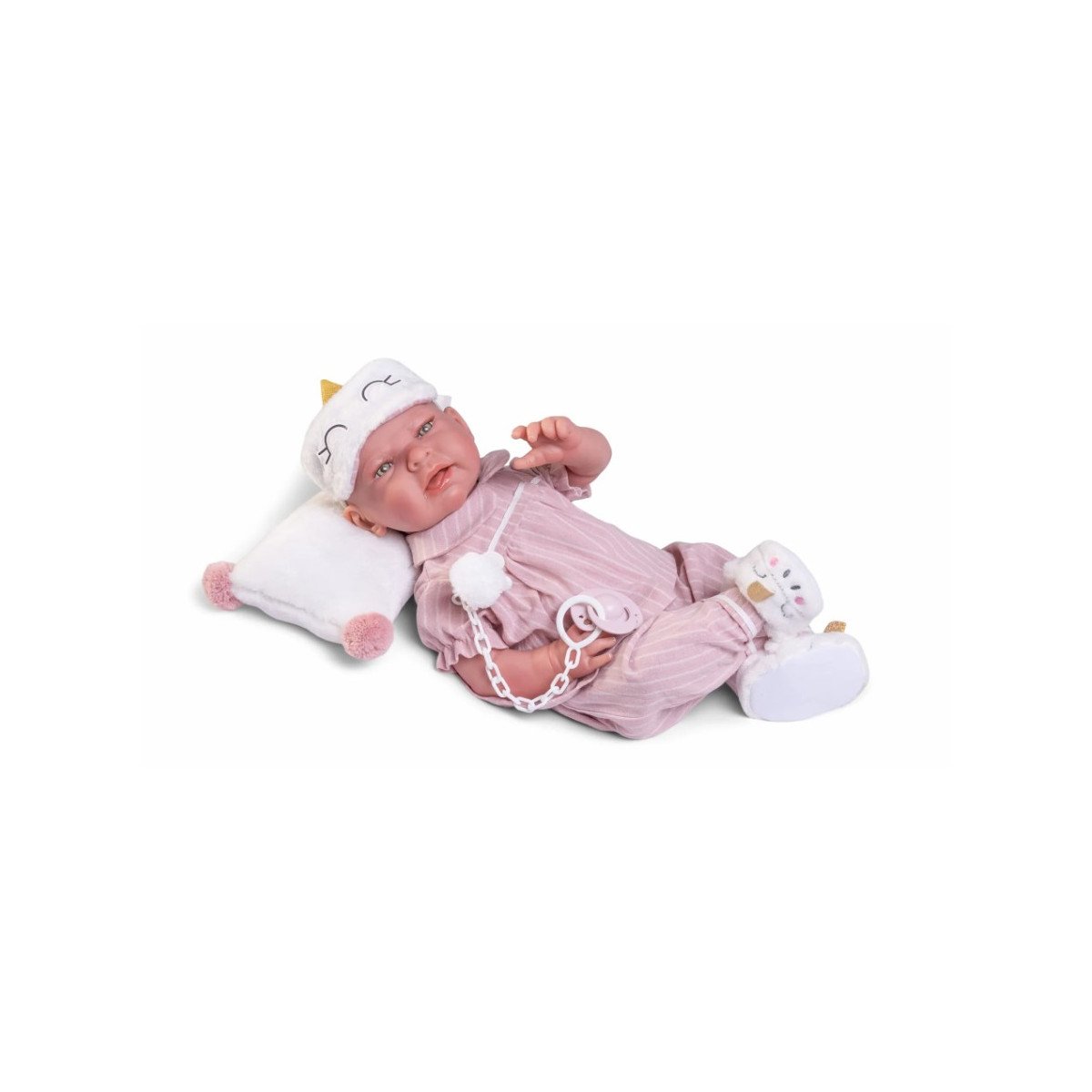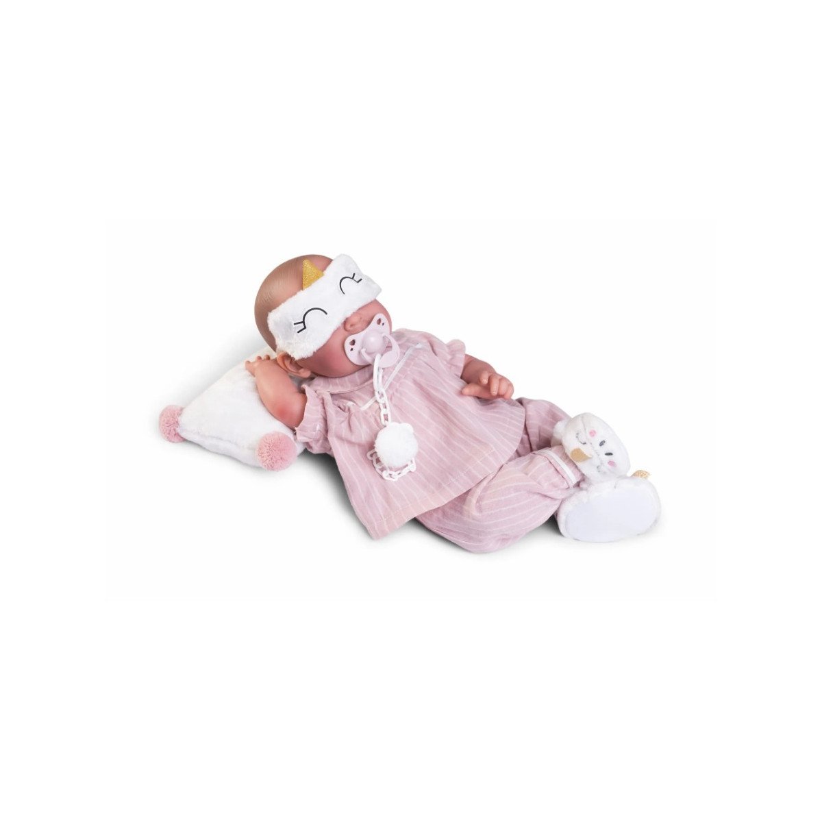 La muñeca Dulce Reborn Lea con Pijama y Antifaz de Muñecas Antonio Juan es una creación excepcional que cautivará a niños y coleccionistas por igual. Es como un auténtico bebé, con todas las características propias de un recién nacido. Cada detalle, desde las uñas hasta su expresión, ha sido cuidadosamente diseñado para que se asemeje a un bebé de verdad. Además, el cuerpo de tela blandito permite darle suaves abrazos, como si estuvieras sosteniendo a un bebé real. El conjunto de pijama y antifaz que lleva Lea añade un toque de dulzura y diversión. El pijama está confeccionado con materiales de alta calidad y presenta un diseño encantador. El antifaz, con su estampado adorable, es perfecto para las noches de juego y sueños.