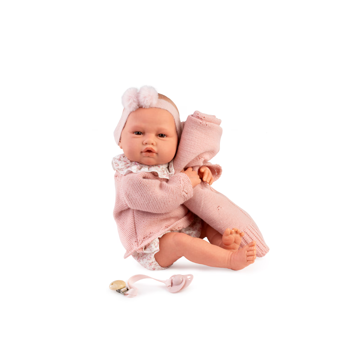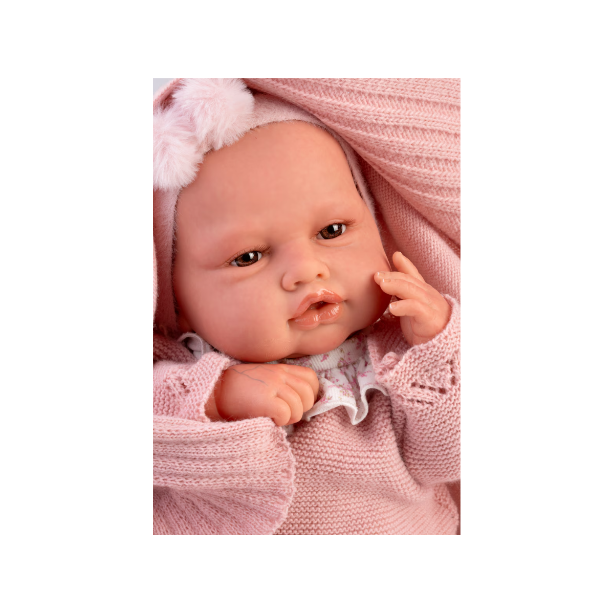 Disfruta del realismo de Tufi, un adorable reborn con fular portabebé incluido, ideal para que niñas y niños a partir de 4 años jueguen a cuidar con ternura.